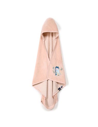 Posiada praktyczny, głęboki kapturek, który chroni główkę przed zimnem. W brzeg ręcznika wszyty jest pasek, który rodzic może założyć na szyję. Dzięki temu ręcznik chroni przed zachlapaniem podczas kąpieli oraz zapewnia swobodę rąk do wytarcia dziecka, jego bezpiecznego przenoszenia i przytulenia.