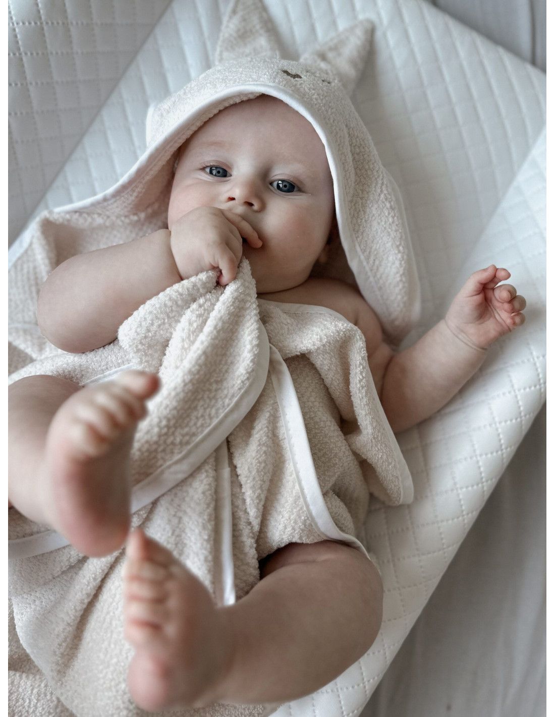 Ręcznik Bambusowy z Uszami Kremowy od YOSOY to niezastąpiony element każdej wyprawki dla maluszka, który doskonale łączy funkcjonalność, bezpieczeństwo i estetykę.