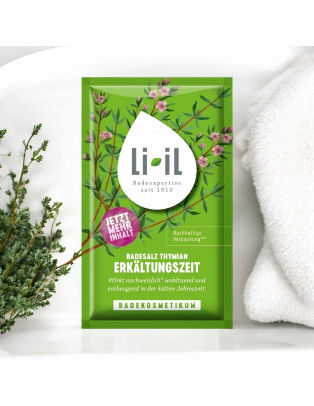 Odkryj zimowe odprężenie dzięki soli do kąpieli Tymianek ZIMNY CZAS od Li-iL Dresdner Essenz. To pielęgnacyjne sole do kąpieli stworzone specjalnie na zimę, zapewniające korzystne i zapobiegawcze działanie w chłodnych porach roku.