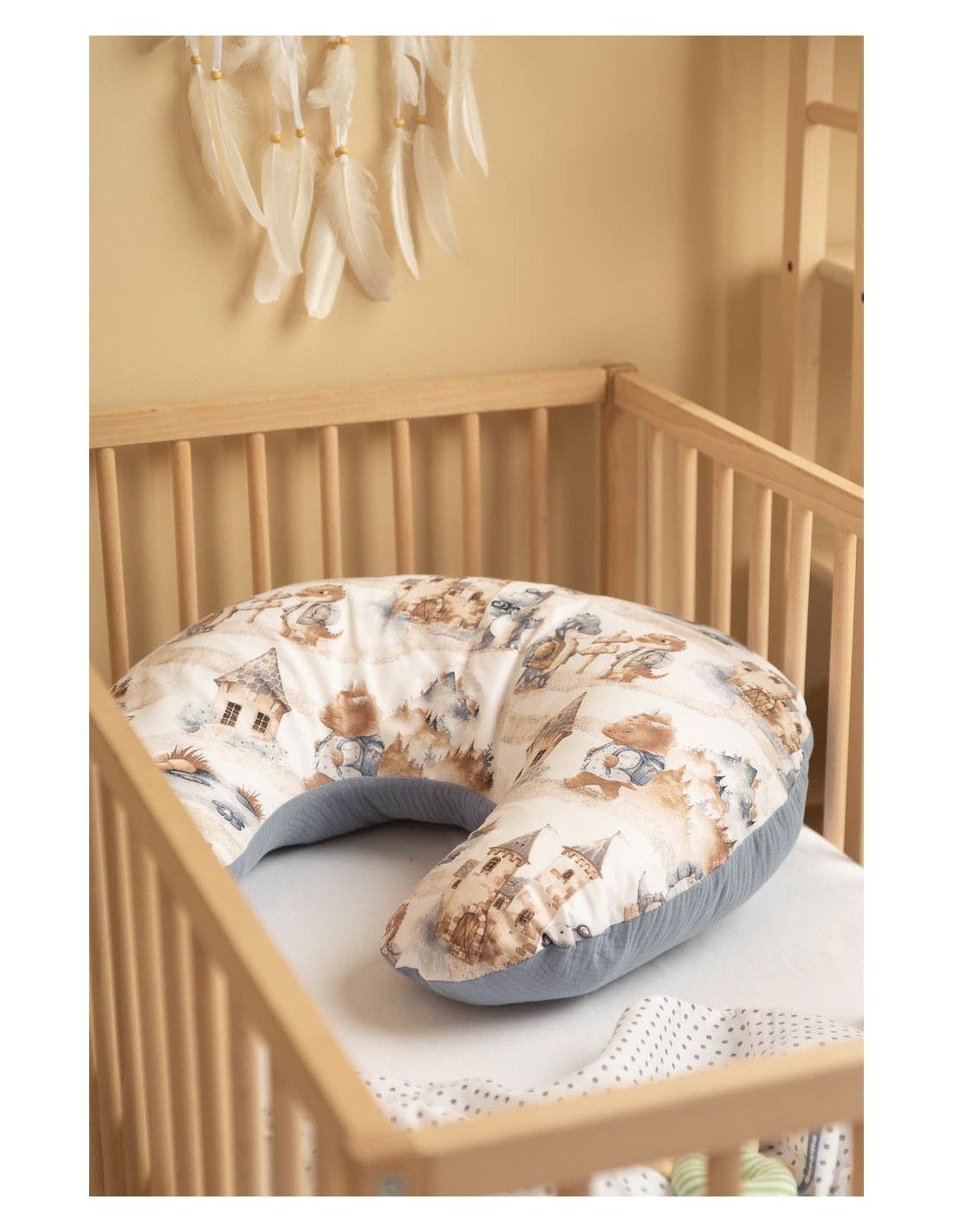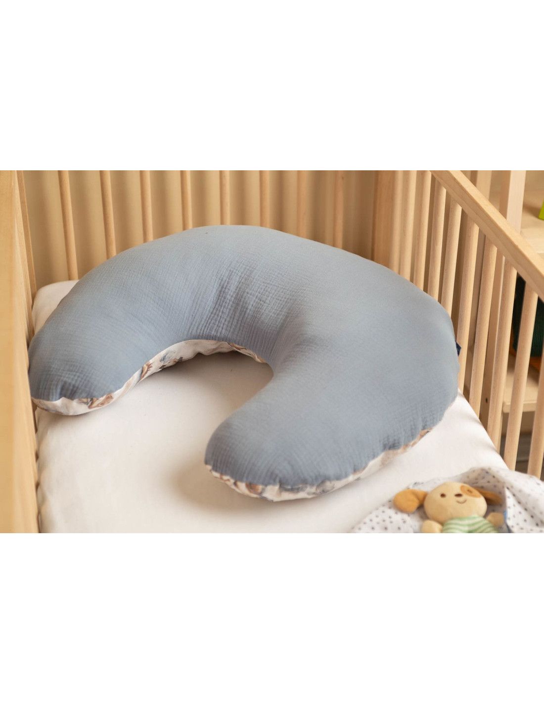 Rogal do karmienia Muślin to niezastąpione wsparcie dla każdej mamy podczas karmienia piersią i butelką. Ergonomiczny kształt poduszki zapewnia stabilne i wygodne podparcie dla dziecka, odciążając ramiona, plecy i szyję mamy. Wykonany z najwyższej jakości muślinu bawełnianego, jest wyjątkowo miękki, przewiewny i delikatny dla wrażliwej skóry niemowlęcia.