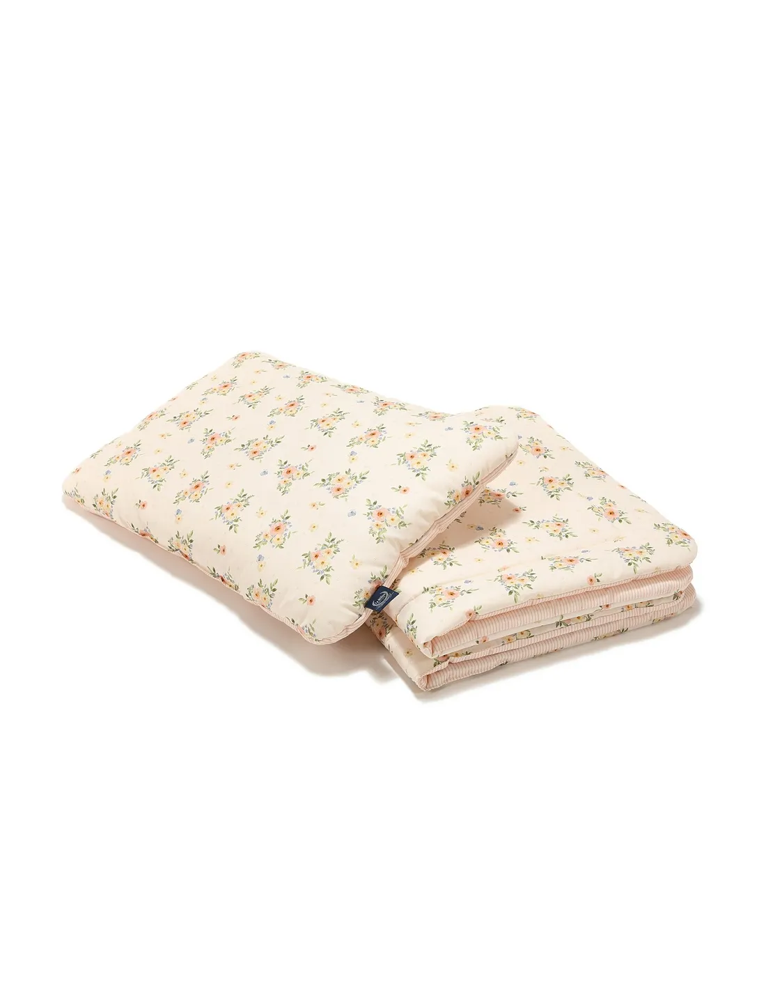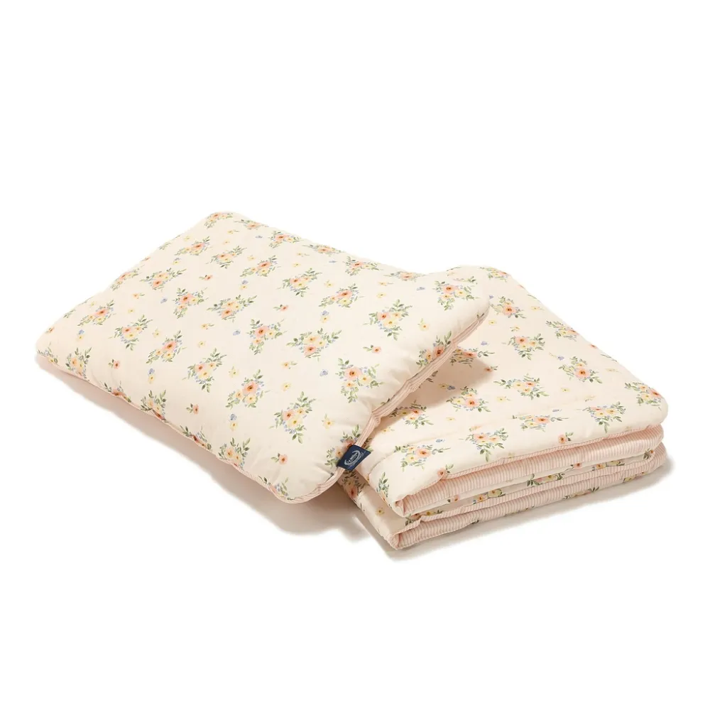 Komplet pościeli ENGLISH GARDEN L od La Millou to praktyczny i stylowy zestaw dla dzieci w wieku 2–5 lat, który zapewnia komfortowy, zdrowy i bezpieczny sen. Zestaw składa się z miękkiej kołderki o wymiarach 110x140 cm oraz poduszki 40x60 cm.