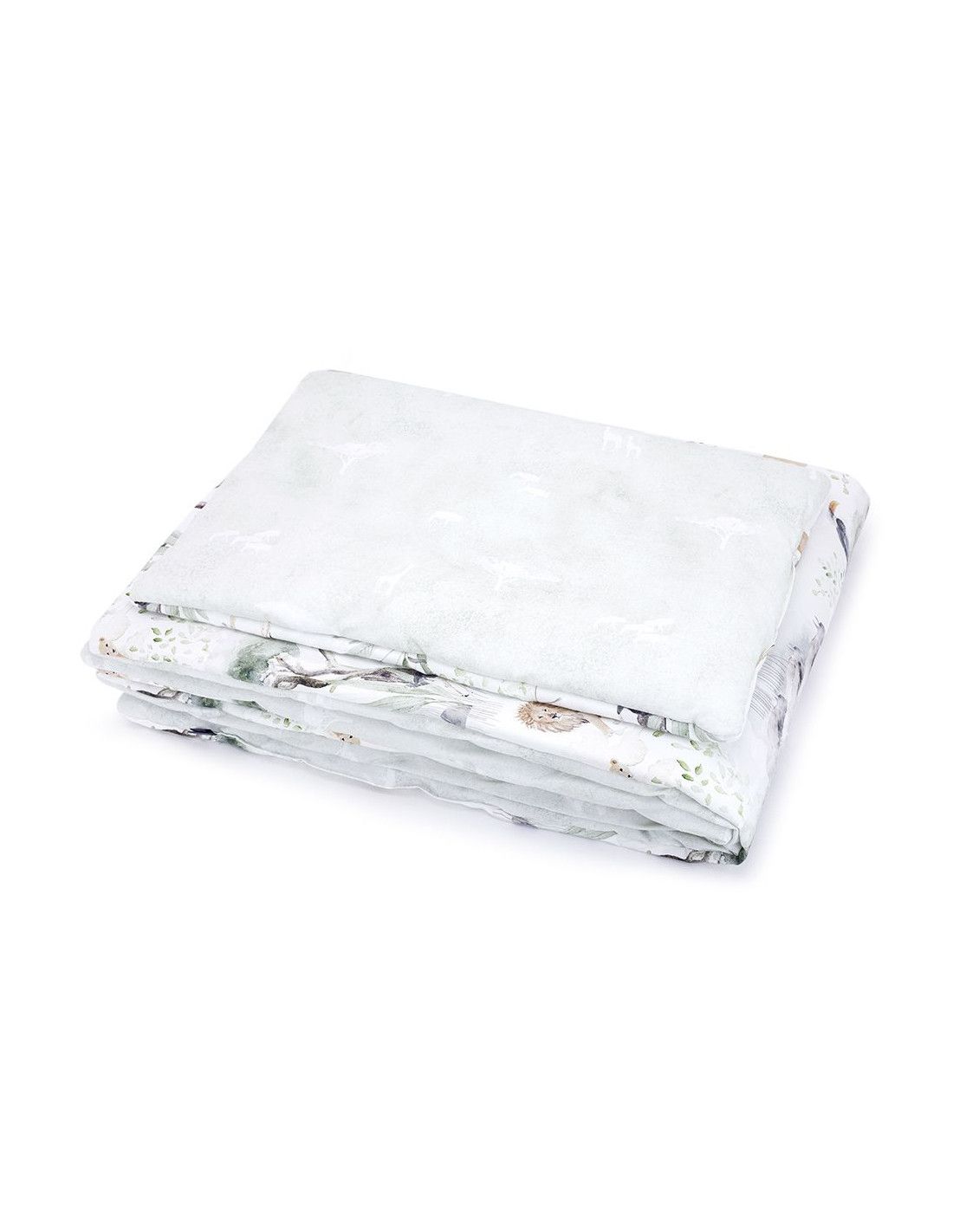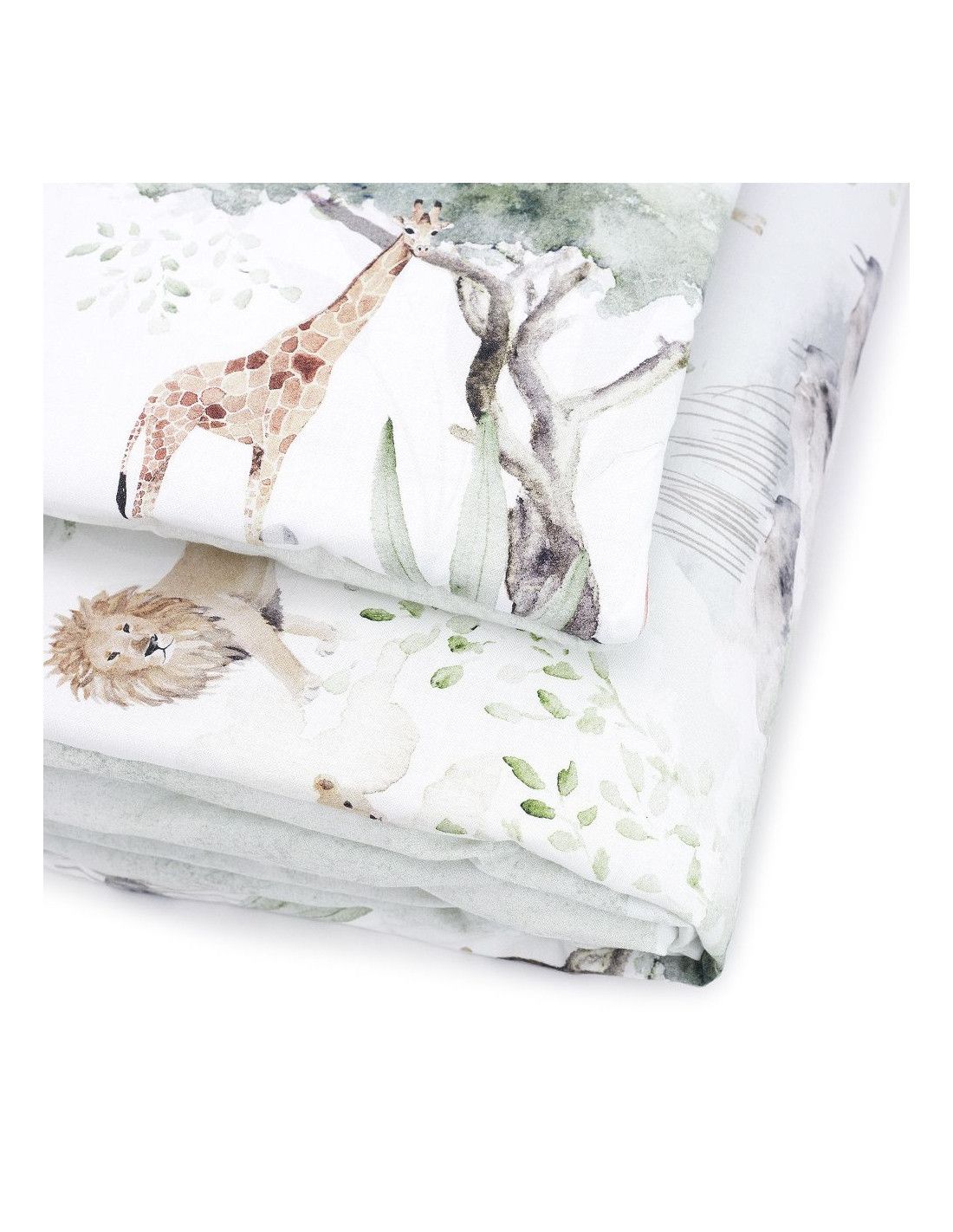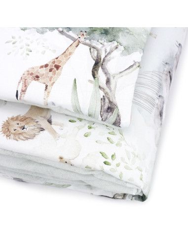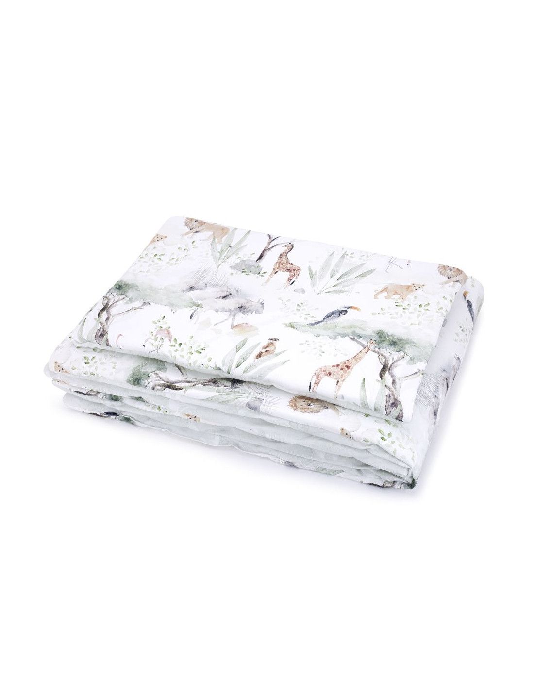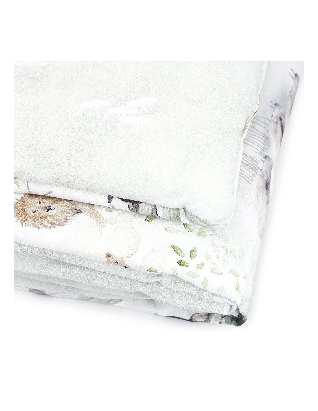 Komplet wykonany jest obustronnie z bawełny najwyższej jakości w starannie dobranych kolorach i wzorach . W środku wypełniony antyalergiczną, lekką, silikonową włókniną zapewniającą ciepło i jeszcze więcej miękkości maluszkowi.