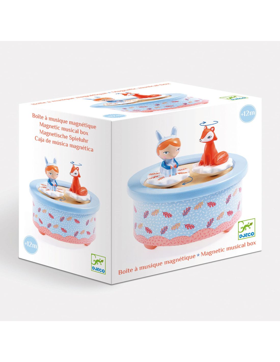 Drewniana, pięknie wykonana pozytywka Djeco. Po nakręceniu pozytywki, figurki obracają się na podstawie oraz wokół własnej osi. Pozytywka wygrywa piękną melodię: "Kołysanka" Franz Schubert