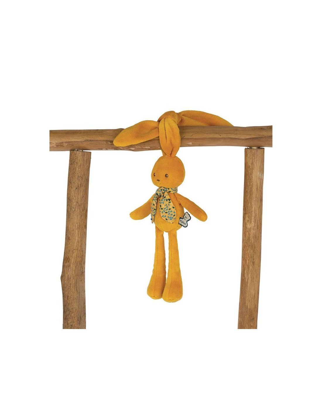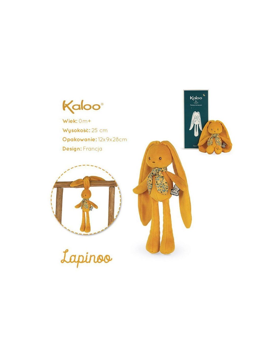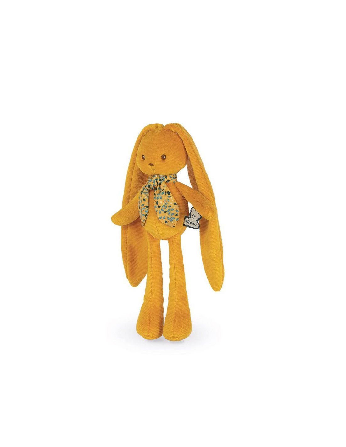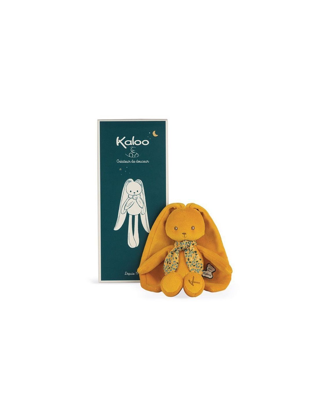 Urocza przytulanka Królik francuskiej marki KALOO to idealna zabawka dla Twojego dziecka, bezpieczna już od pierwszych dni życia. Jest niezwykle miękka, piękna i perfekcyjnie wykończona. Poręcznych rozmiarów wyjątkowo przyjemny w dotyku królik w miodowym kolorze ma długie nogi i bardzo długie uszy, za które można go przywiązać do pałąka w wózku lub szczebelków łóżeczka, a pod szyją – zawiązaną na supeł chusteczkę ze wzorem w drobne listki. Będzie świetnym kompanem maluszka – do tulenia, usypiania, uspokajania, zabierania na spacery i wyprawy. Ma haftowane oczy i buzię.