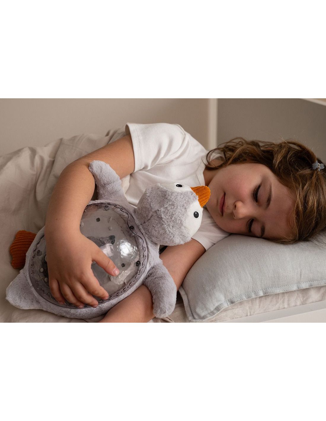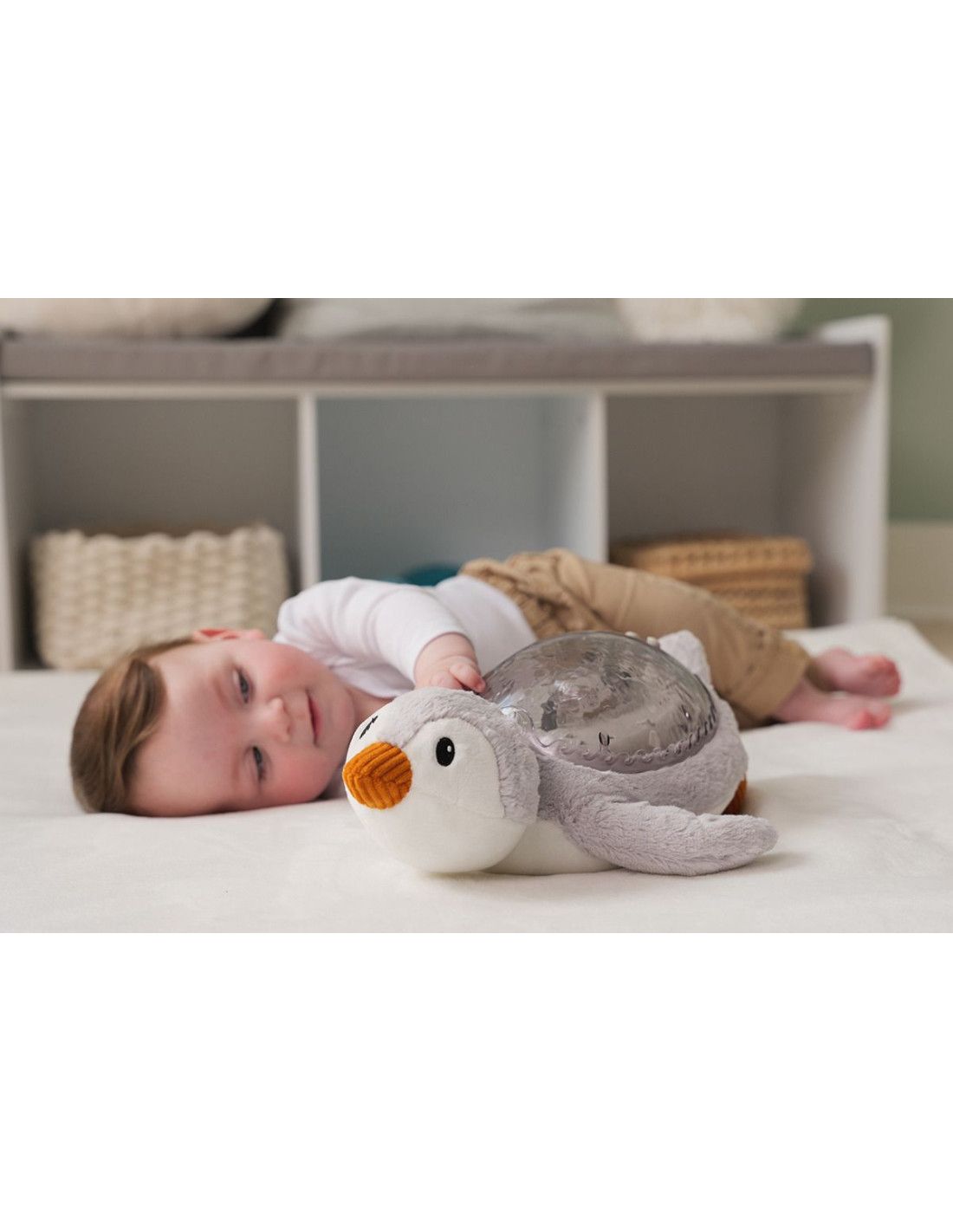 Projektor z pozytywką Pingwin ECO Cloud.b to wyjątkowe urządzenie, które łączy w sobie funkcje lampki nocnej, projektora i pluszowej maskotki.