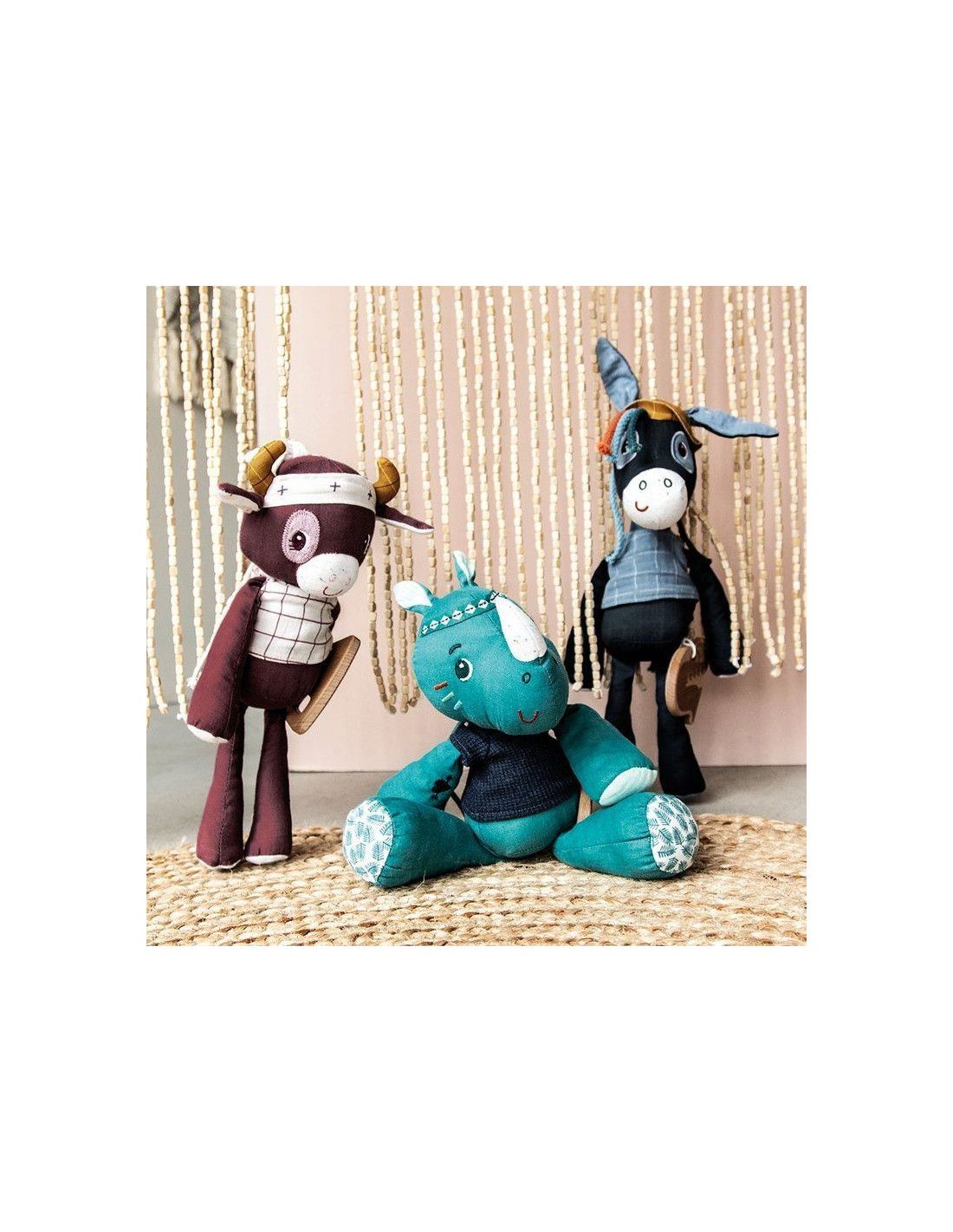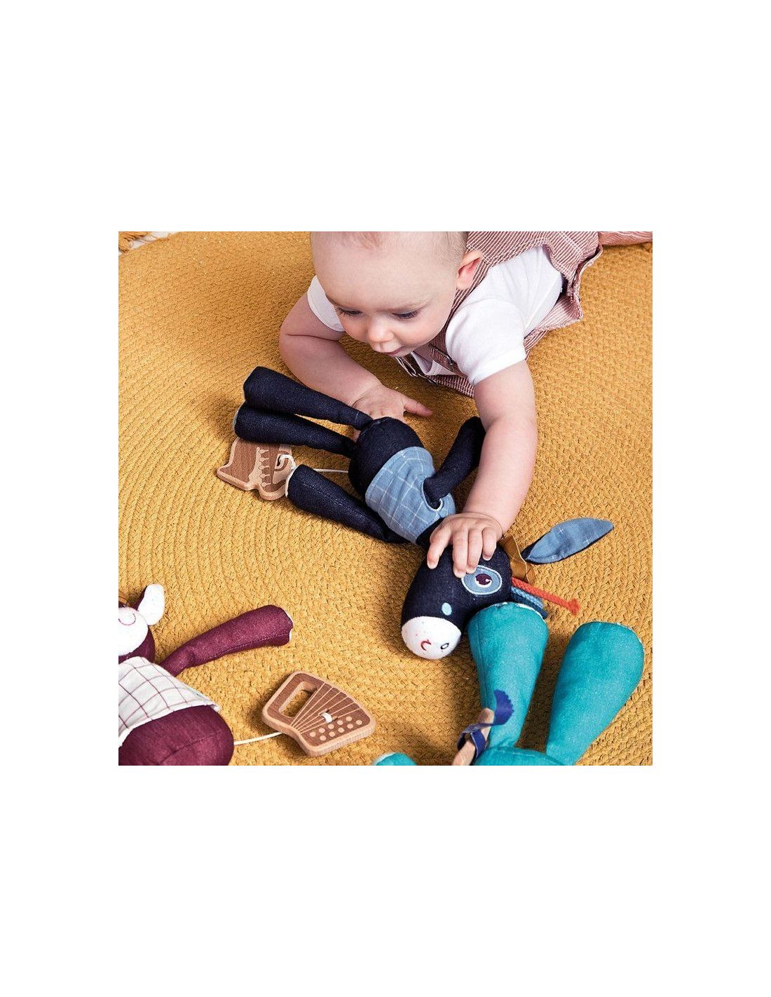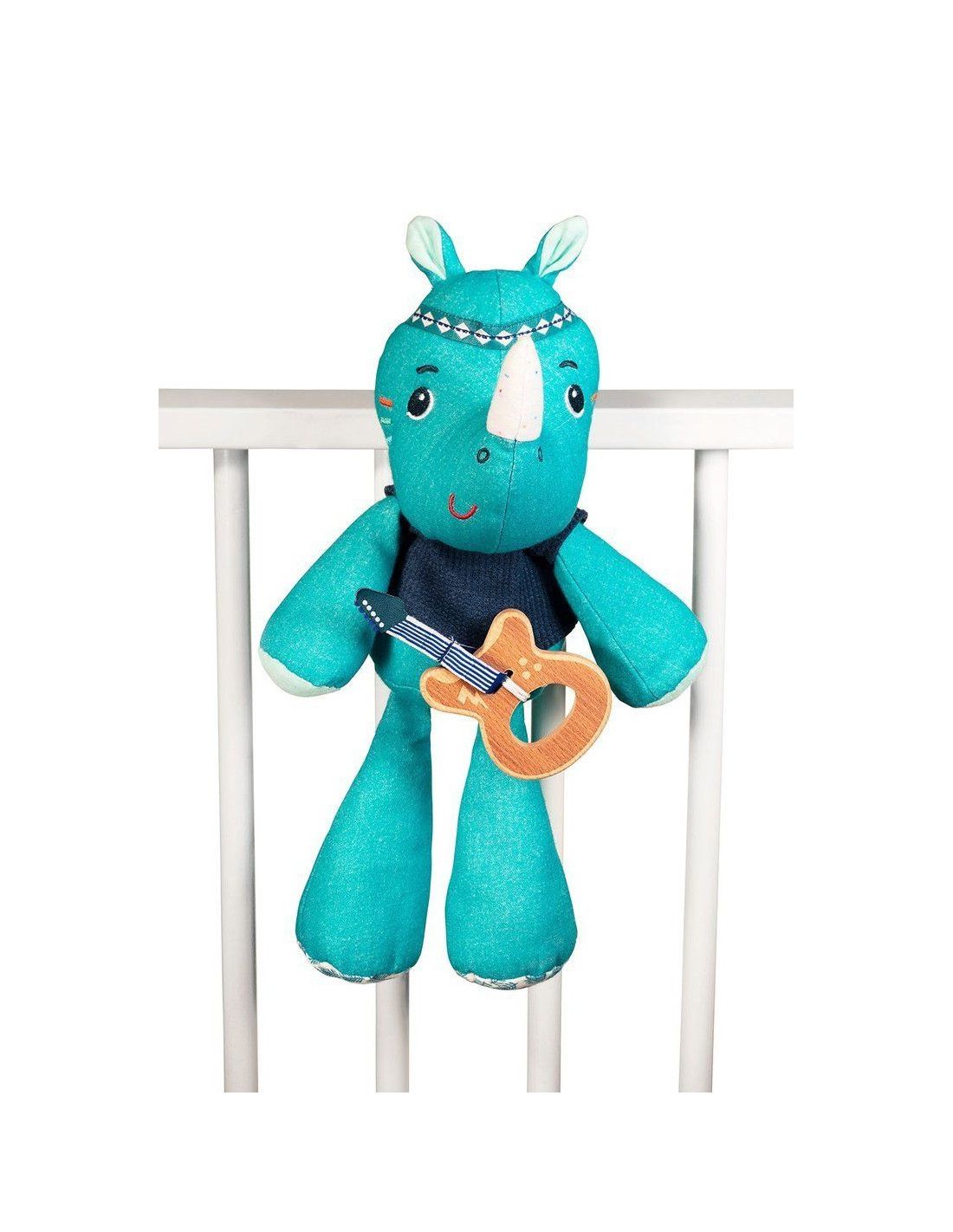 Duża przytulanka z pozytywką Nosorożec Marius belgijskiej marki Lilliputiens to wspaniały pierwszy przyjaciel maluszka. Jest idealny do tulenia, uspokajania i usypiania. Ma postać radosnego niebieskiego Nosorożca Mariusa, aż 30 cm wysokości i drewnianą gitarę elektryczną, która stanowi jednocześnie uchwyt ukrytej wewnątrz pozytywki. Pociągniecie za instrument uaktywnia znaną, przyjemną dla ucha melodię utworu zespołu The Doors „Light my fire”. Muzykujący Marius nosi dzianinowy t-shirt, został uszyty z delikatnej bawełny organicznej, na głowie ma opaskę z tasiemki, a na ramieniu – wyszywany tatuaż. Zabawka jest solidnie wykonana i bezpieczna. Wyposażona w troczki, które umożliwiają jej powieszenie przy łóżeczku czy wózku dziecka. Zaskakuje i pobudza dziecięcą wyobraźnię. Aktywizuje zmysł słuchu, pomaga w zasypianiu i wyciszaniu się.