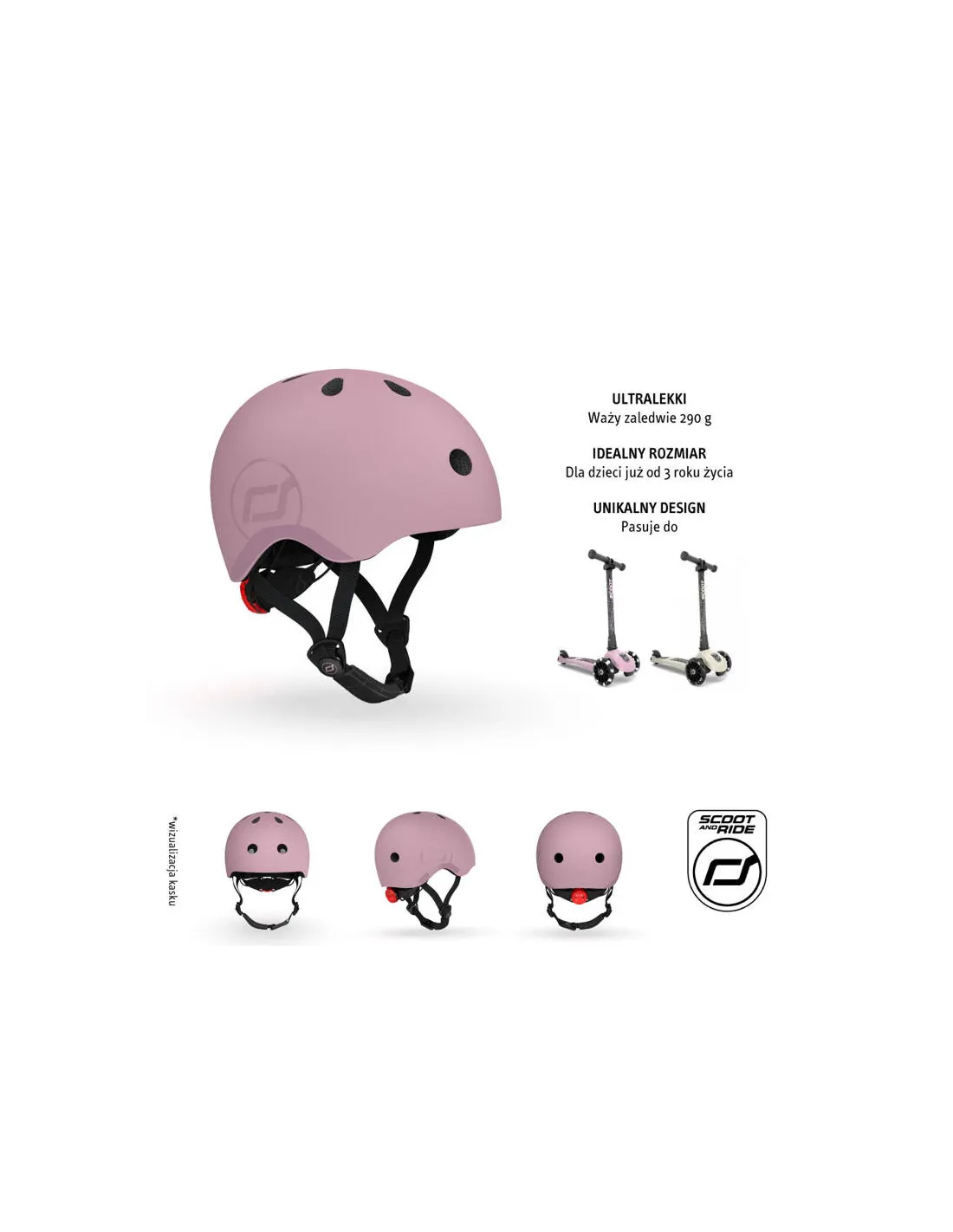 Kask dziecięcy SCOOT&RIDE S-M Wildberry to ultralekki (zaledwie 290 g) i bezpieczny kask ochronny dla dzieci od 3 lat, idealny na hulajnogę, rowerek biegowy, jeździk i rower.