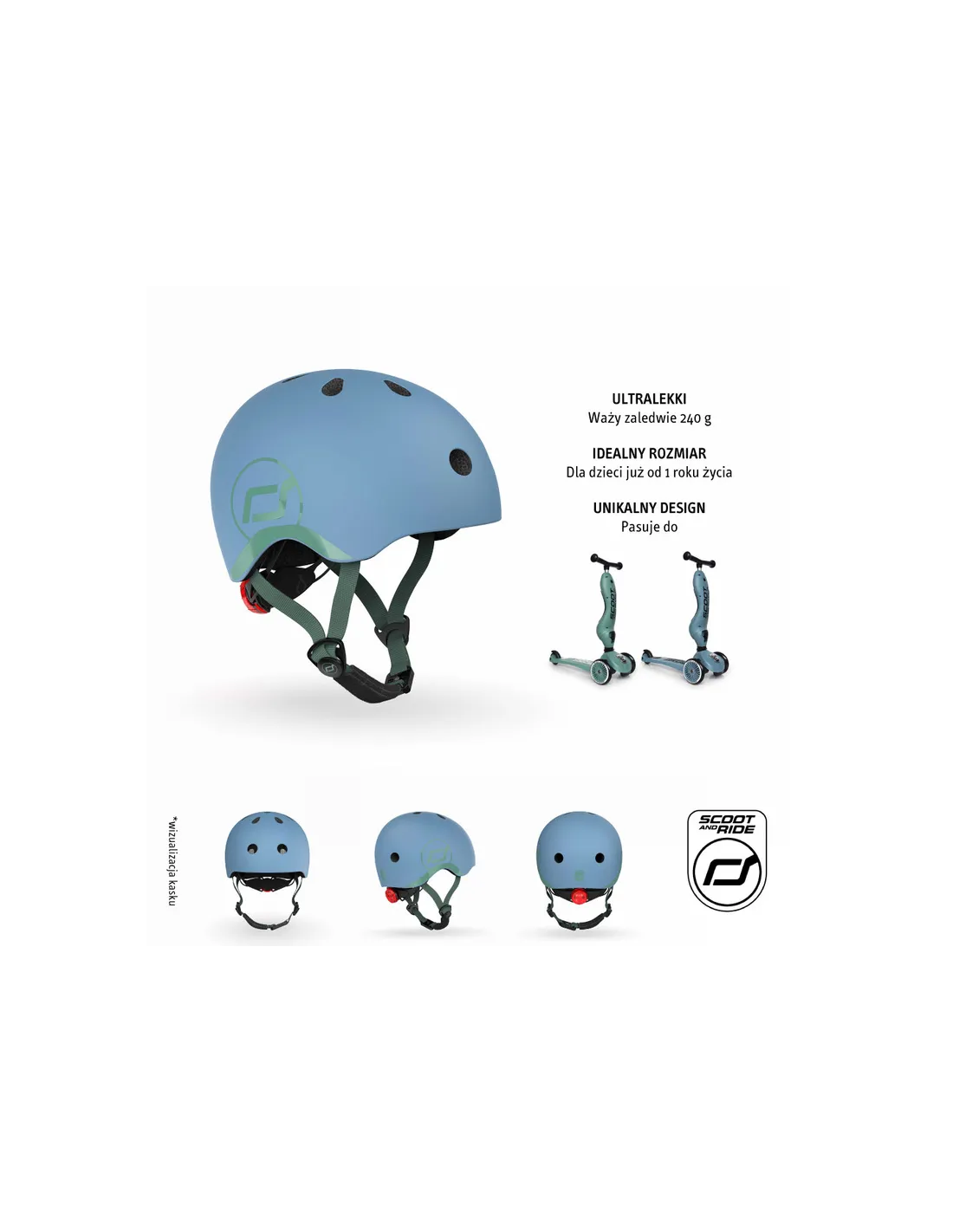 Kask dziecięcy XXS-S Scoot & Ride Steel to ultralekki, regulowany kask ochronny dla najmłodszych, zaprojektowany z myślą o dzieciach od 1. roku życia.