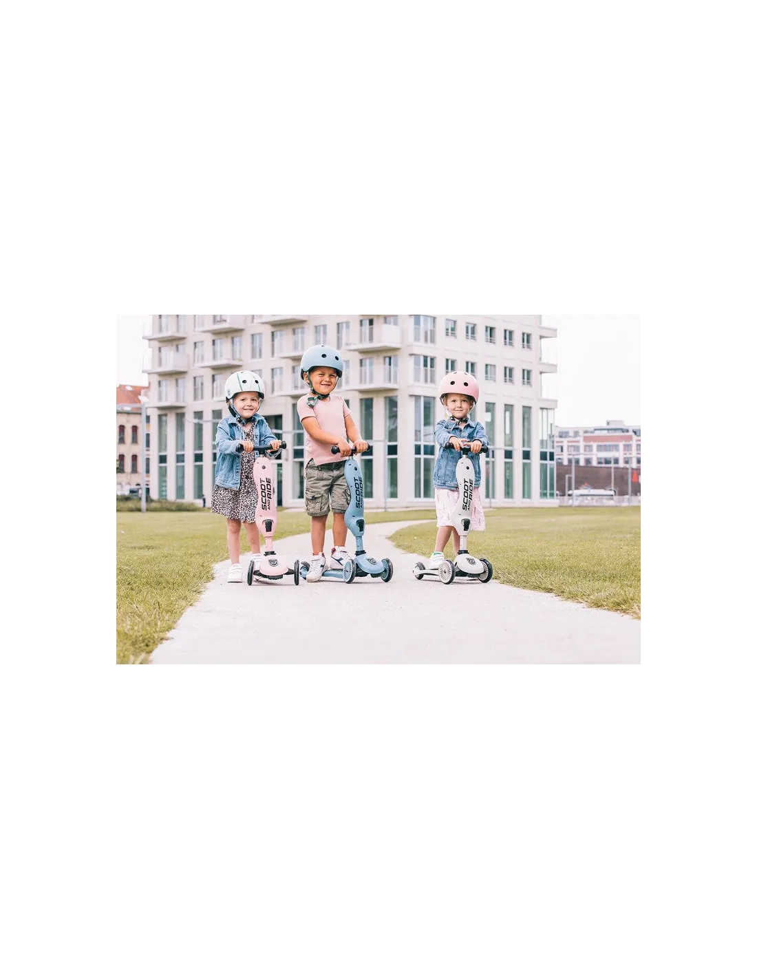 Model Steel został zaprojektowany jako spójne kolorystycznie uzupełnienie hulajnogi Highwaykick 1. Kask doskonale komponuje się z pastelową kolekcją tej serii. Matowa powierzchnia oraz grafiki z logo Scoot & Ride podkreślają nowoczesny, minimalistyczny styl.