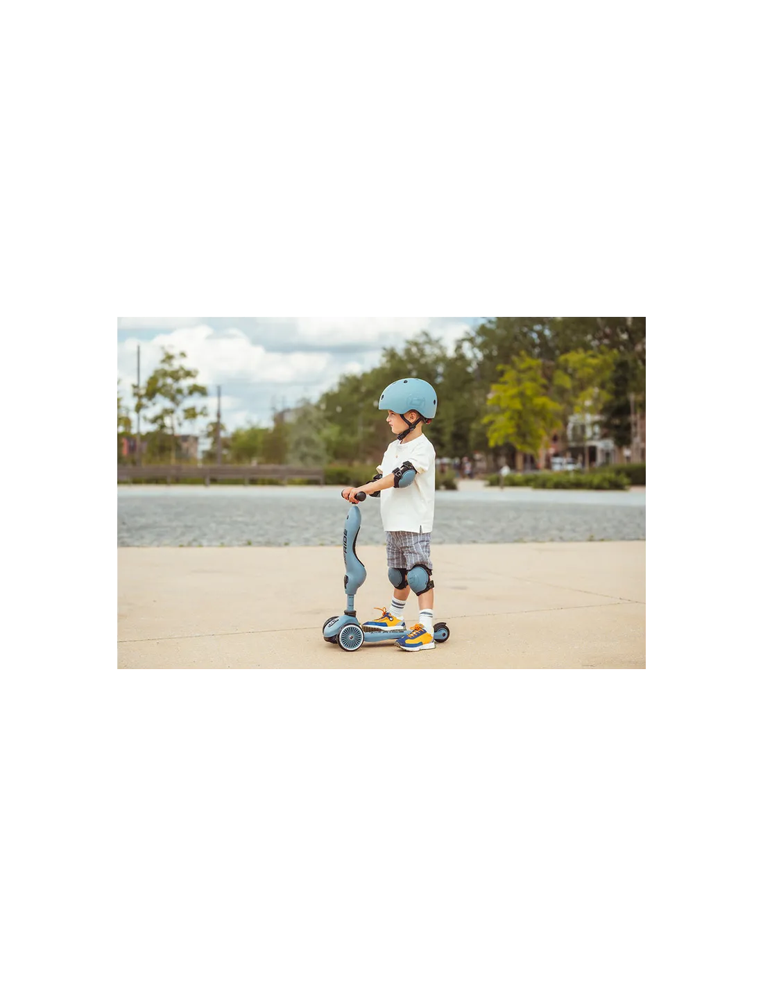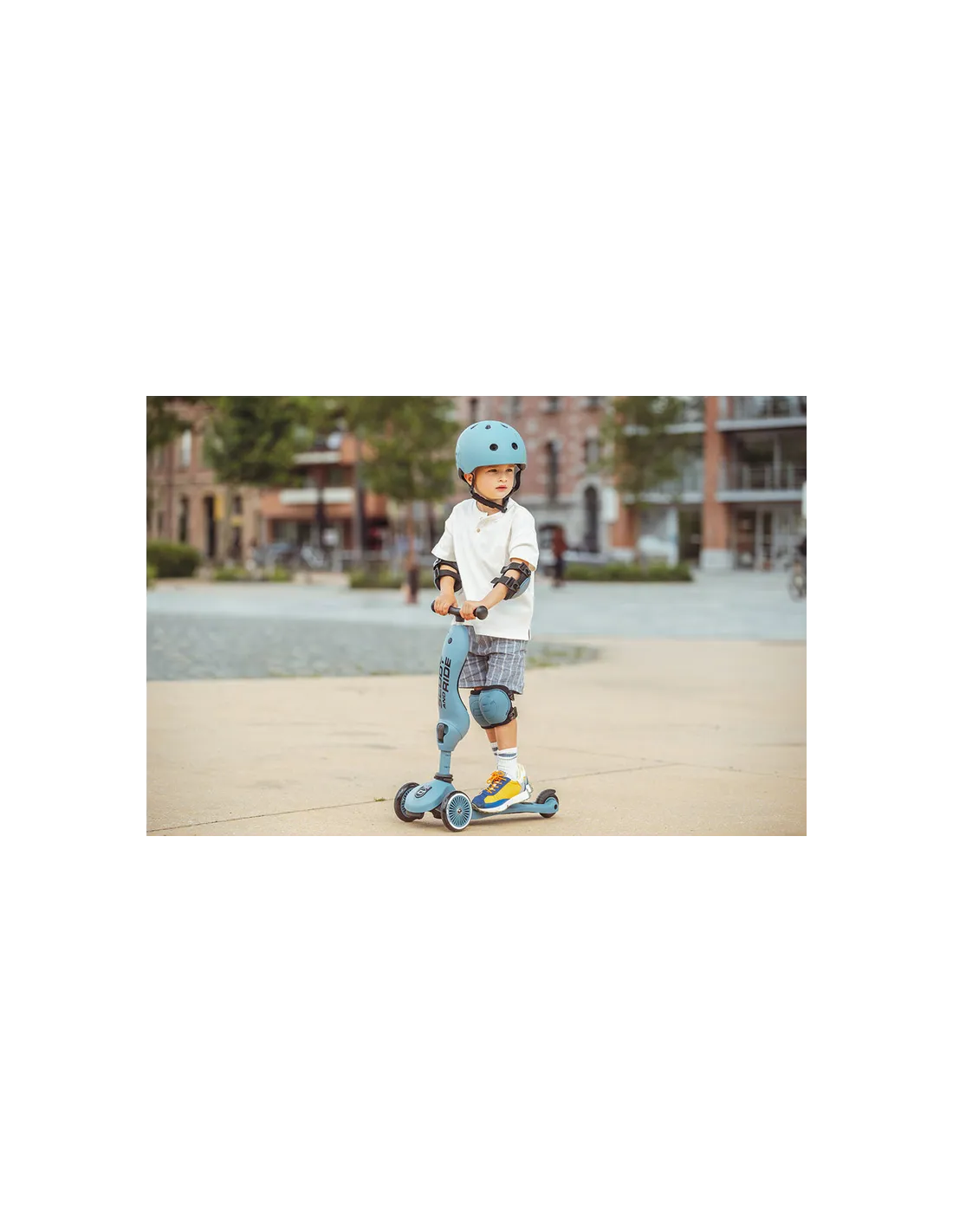 SCOOT&RIDE XXS Steel to nowoczesne ochraniacze dla dzieci, które łączą bezpieczeństwo, wygodę i stylowy, uniwersalny kolor.