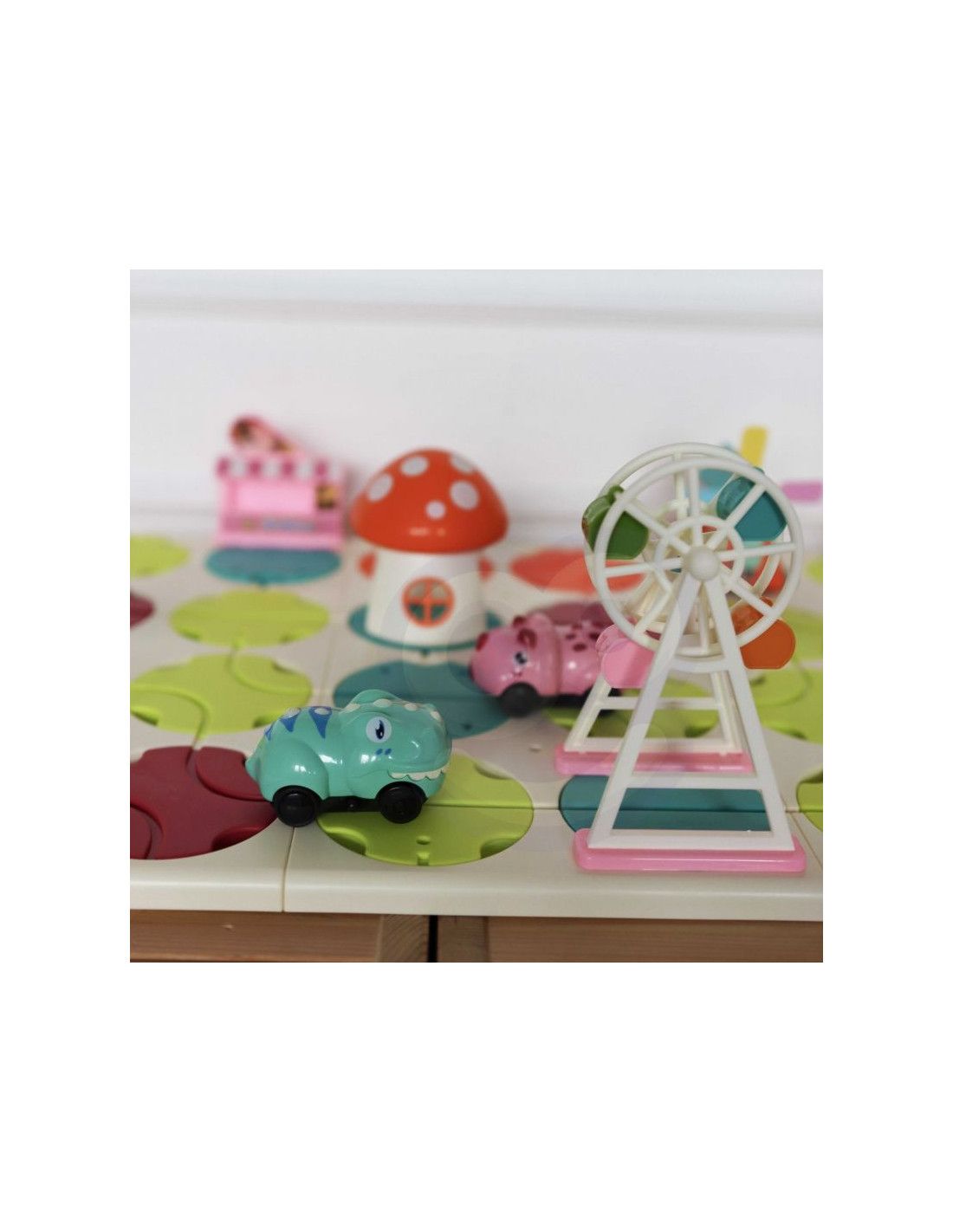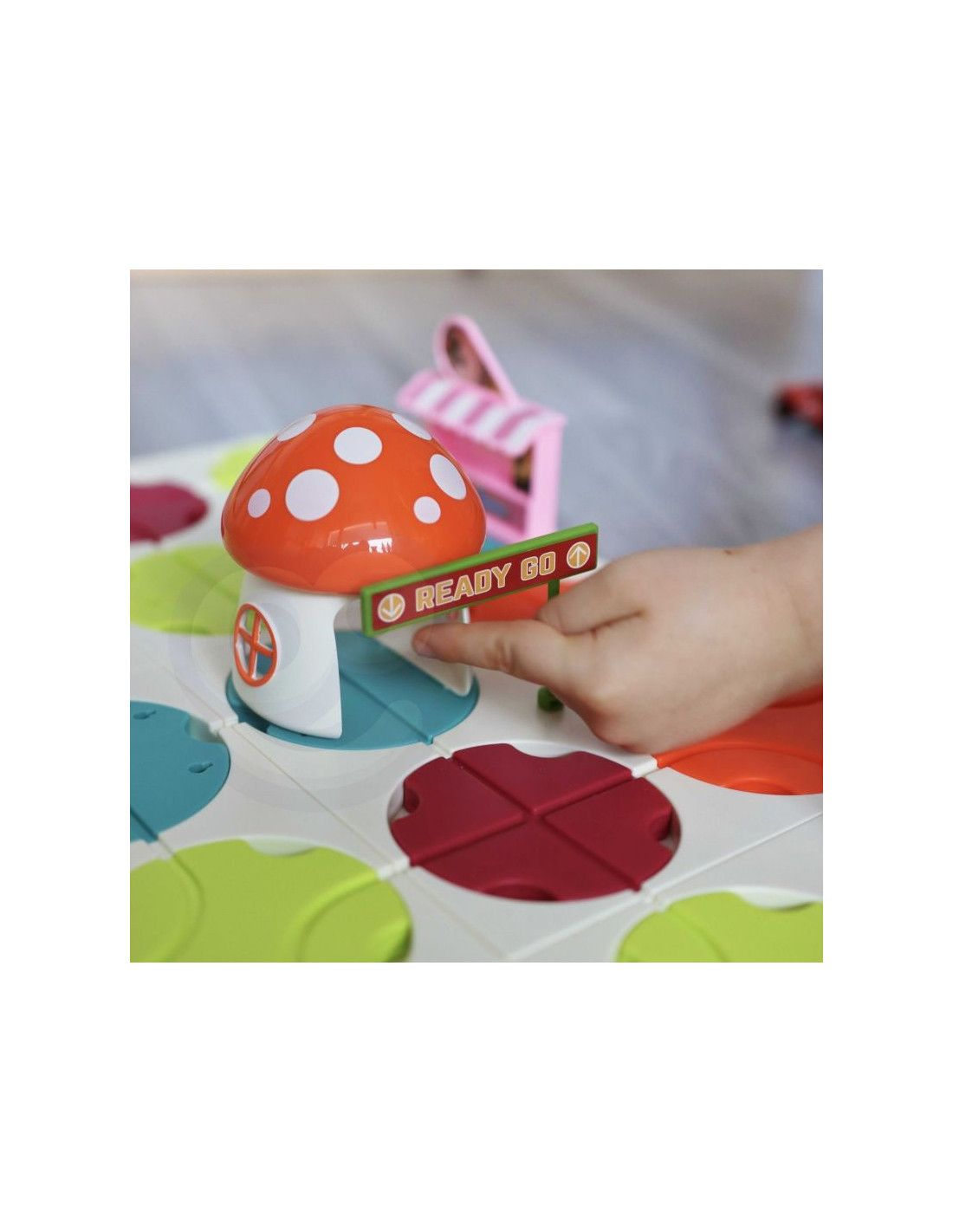 - - wymagane baterie: samochodzik - 1x 1,5V "AAA" (brak w zestawie), domek grzybek - 3x 1,5V "AG13" (w zestawie)
