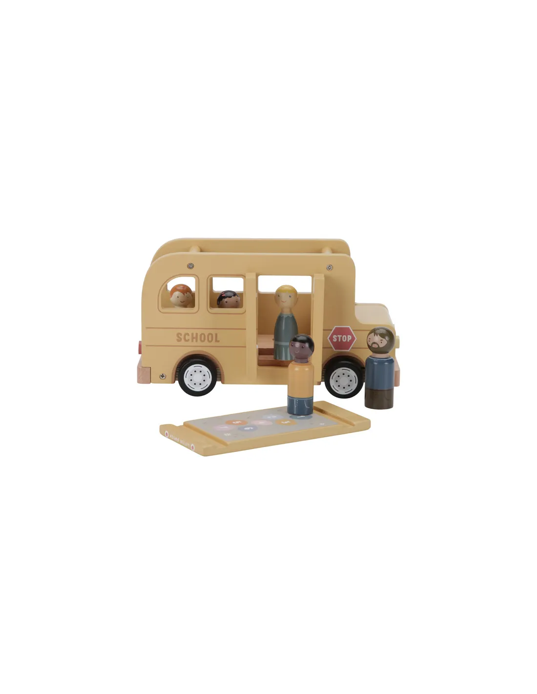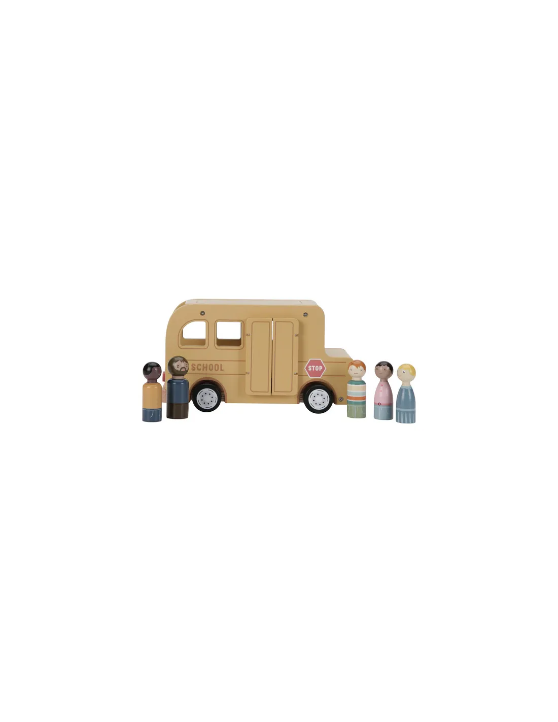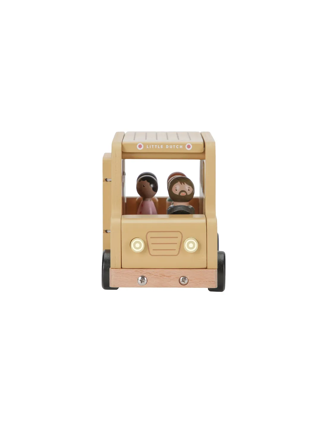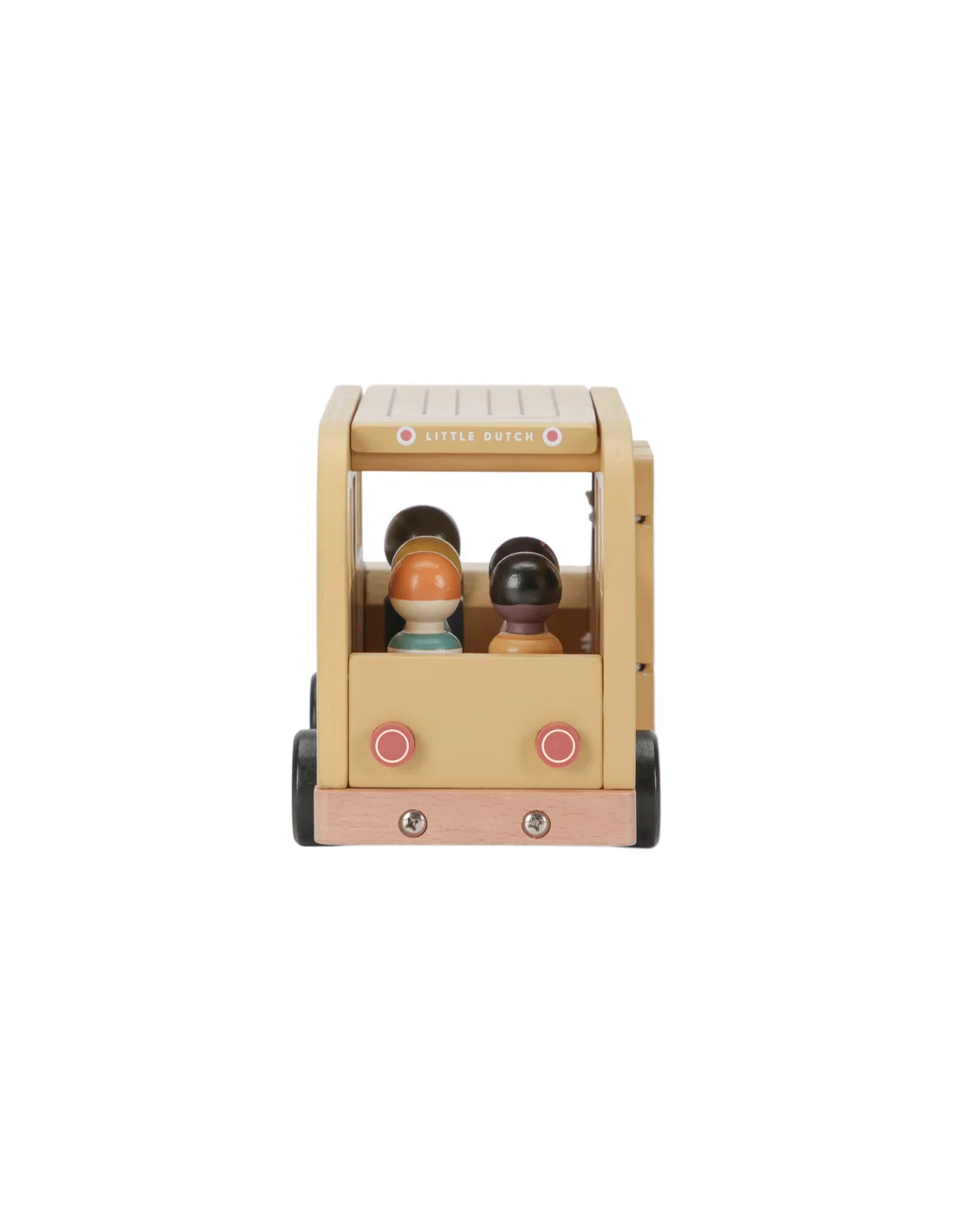 Drewniany autobus dla dzieci wyposażony jest w otwierane drzwi oraz zdejmowany dach, co ułatwia umieszczanie figurek w środku i sprawia, że zabawa staje się jeszcze bardziej realistyczna. W zestawie znajduje się aż 5 drewnianych figurek, które można wykorzystać również w innych zabawkach, takich jak domek dla lalek czy pojazdy Little Dutch.