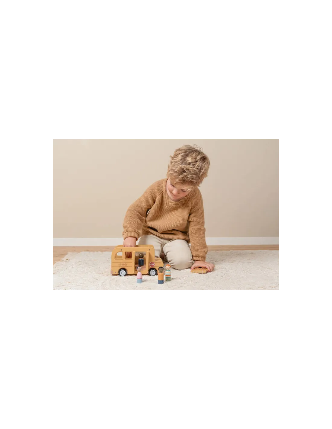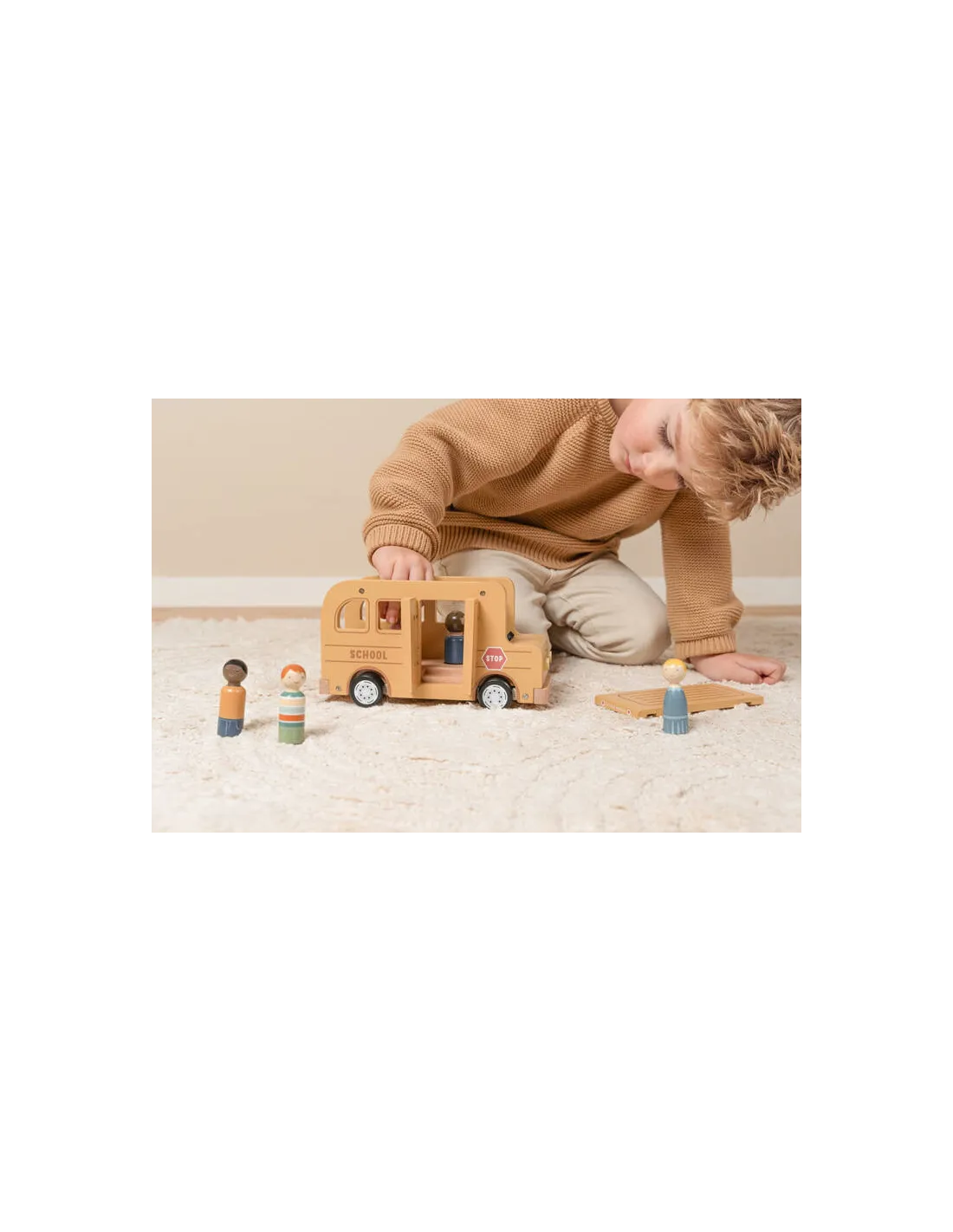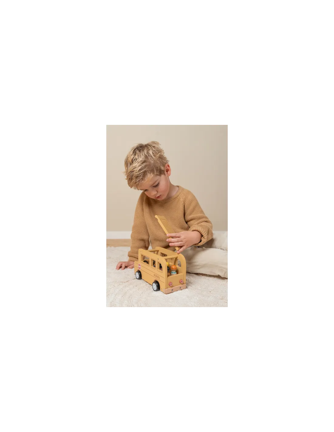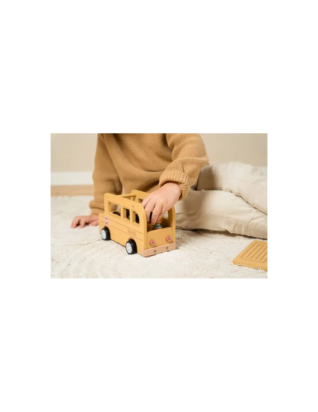 Szkolny autobus Little Dutch to wyjątkowa drewniana zabawka dla dzieci, która zachęca do tworzenia własnych historii i pełnych przygód podróży.