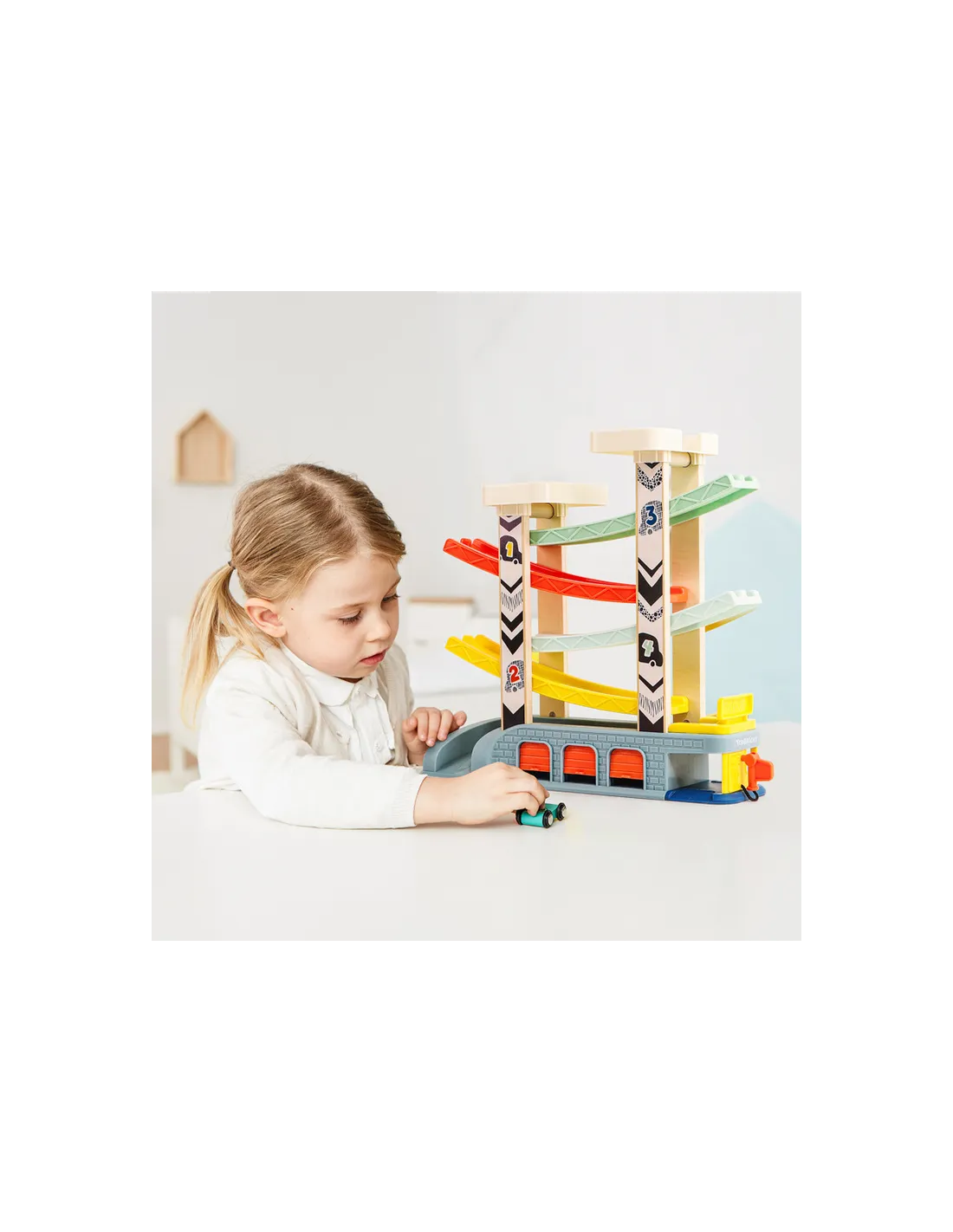 Tor samochodowy Zjeżdżalnia z superszybkimi autami Topbright to rozbudowany zestaw do zabawy dla dzieci od 18 miesięcy, zaprojektowany z myślą o dynamicznej i angażującej zabawie tematycznej.