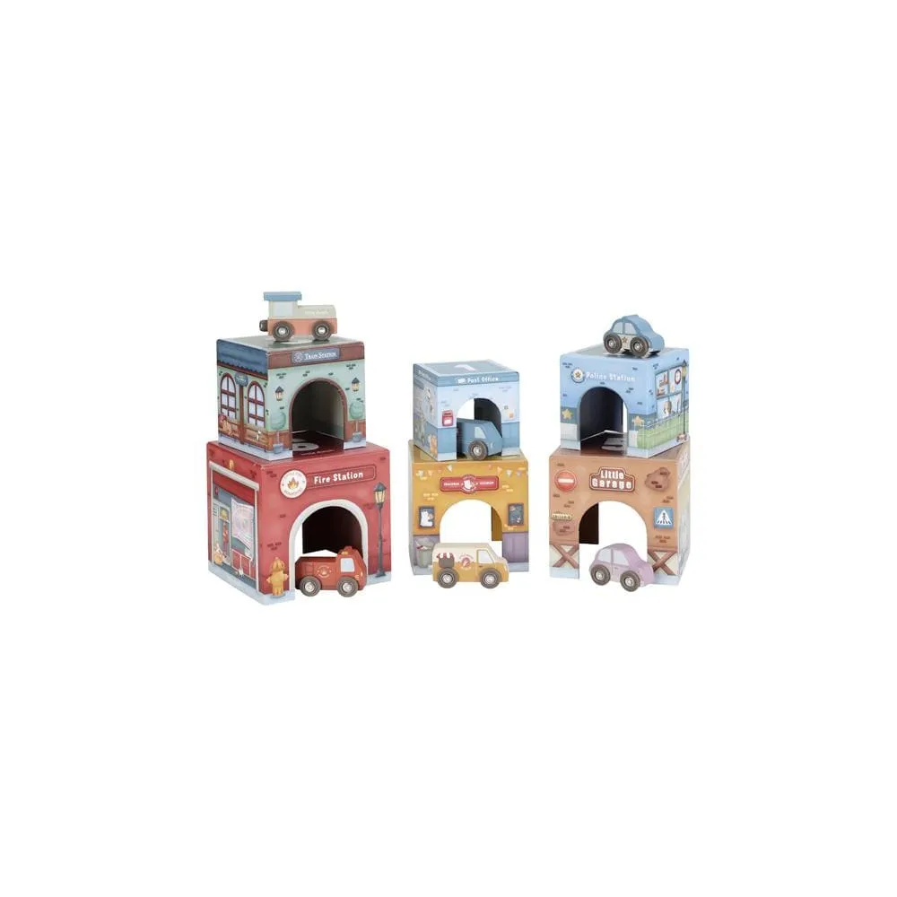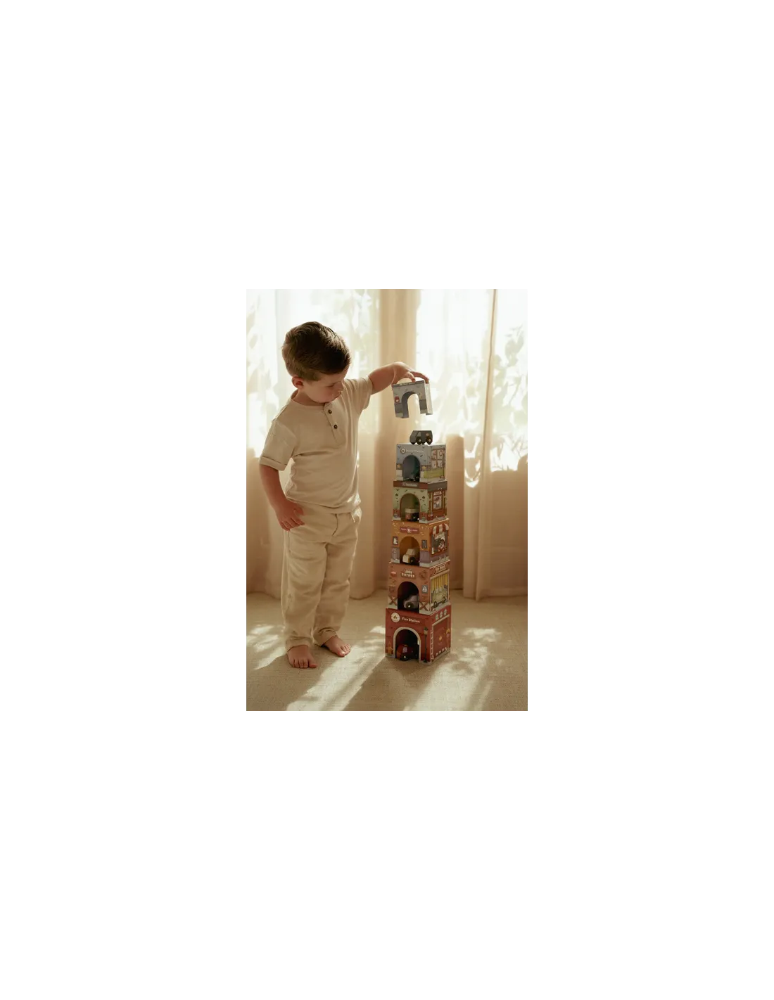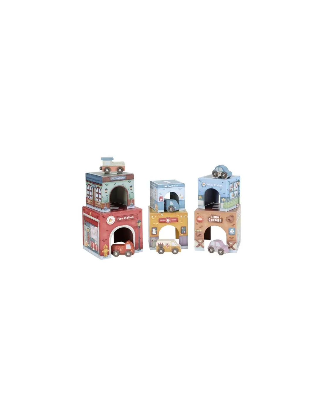 Wieża do układania + 6 autek Little Dutch to wyjątkowy zestaw edukacyjny, który łączy klasyczną zabawę w budowanie z odkrywaniem świata pojazdów.