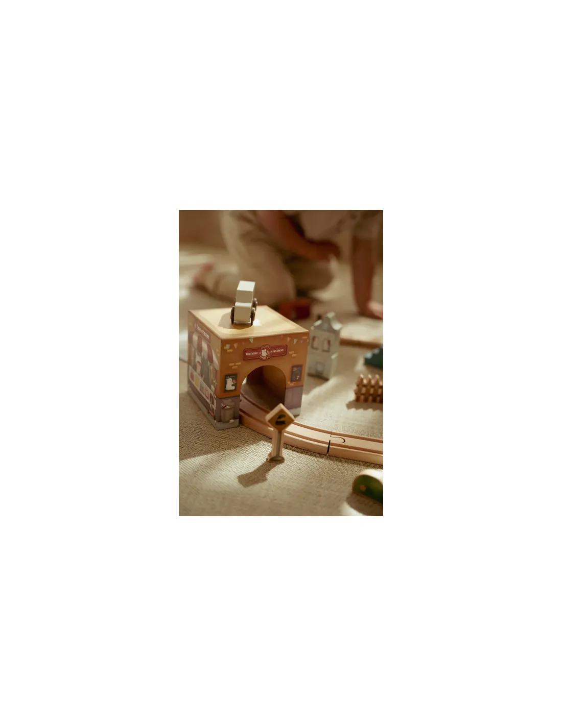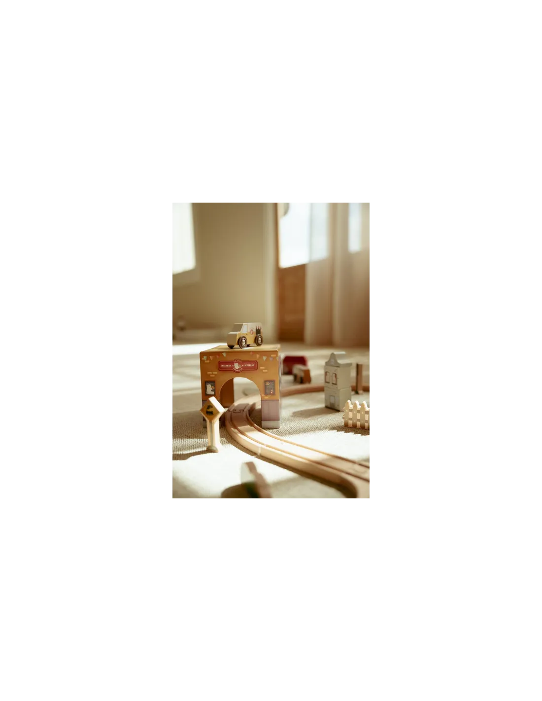 Dzięki różnym rozmiarom klocków maluch może układać wieżę, budować konstrukcje lub łączyć elementy z torami kolejki XL Little Dutch, tworząc kreatywne scenariusze zabawy. Każdy klocek ozdobiony jest pięknymi ilustracjami i ma przypisany pojazd – od auta osobowego po ciężarówkę czy autobus.