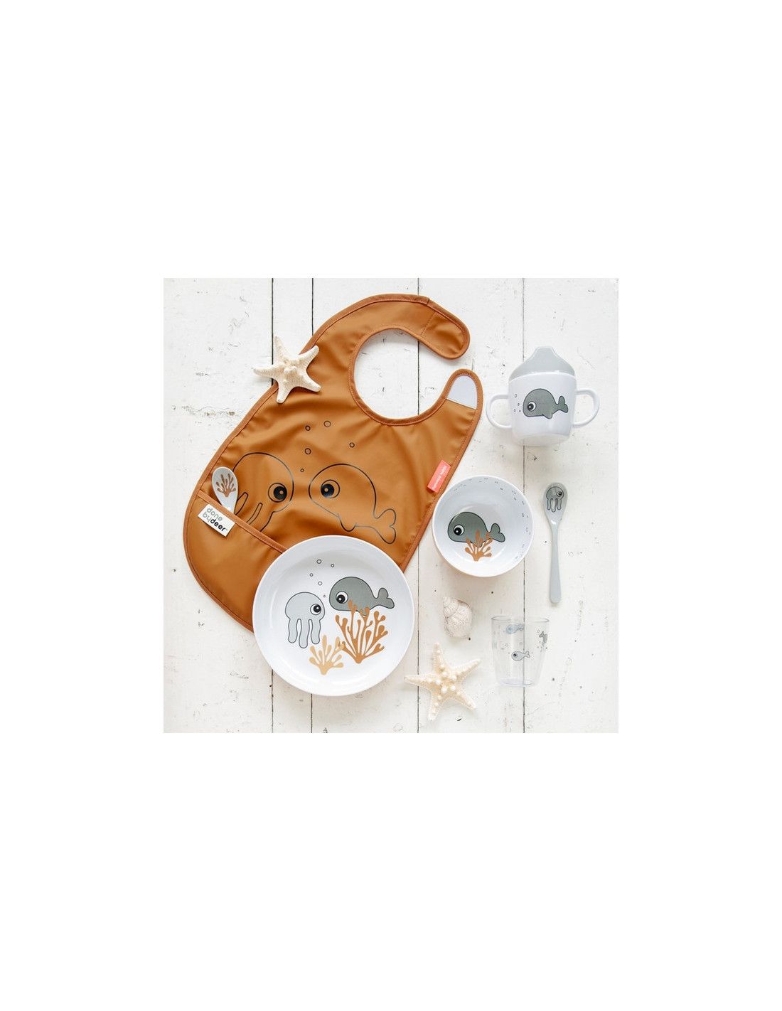 Praktyczny śliniaczek z uroczym nadrukiem kolekcji Sea Friends. Śliniaczek ma łatwą do wycierania i wodoodporną powierzchnię, a kieszeń pomieści spadające jedzenie - wszystko po to, aby karmienie było praktyczne i aby uchronić od bałaganu.