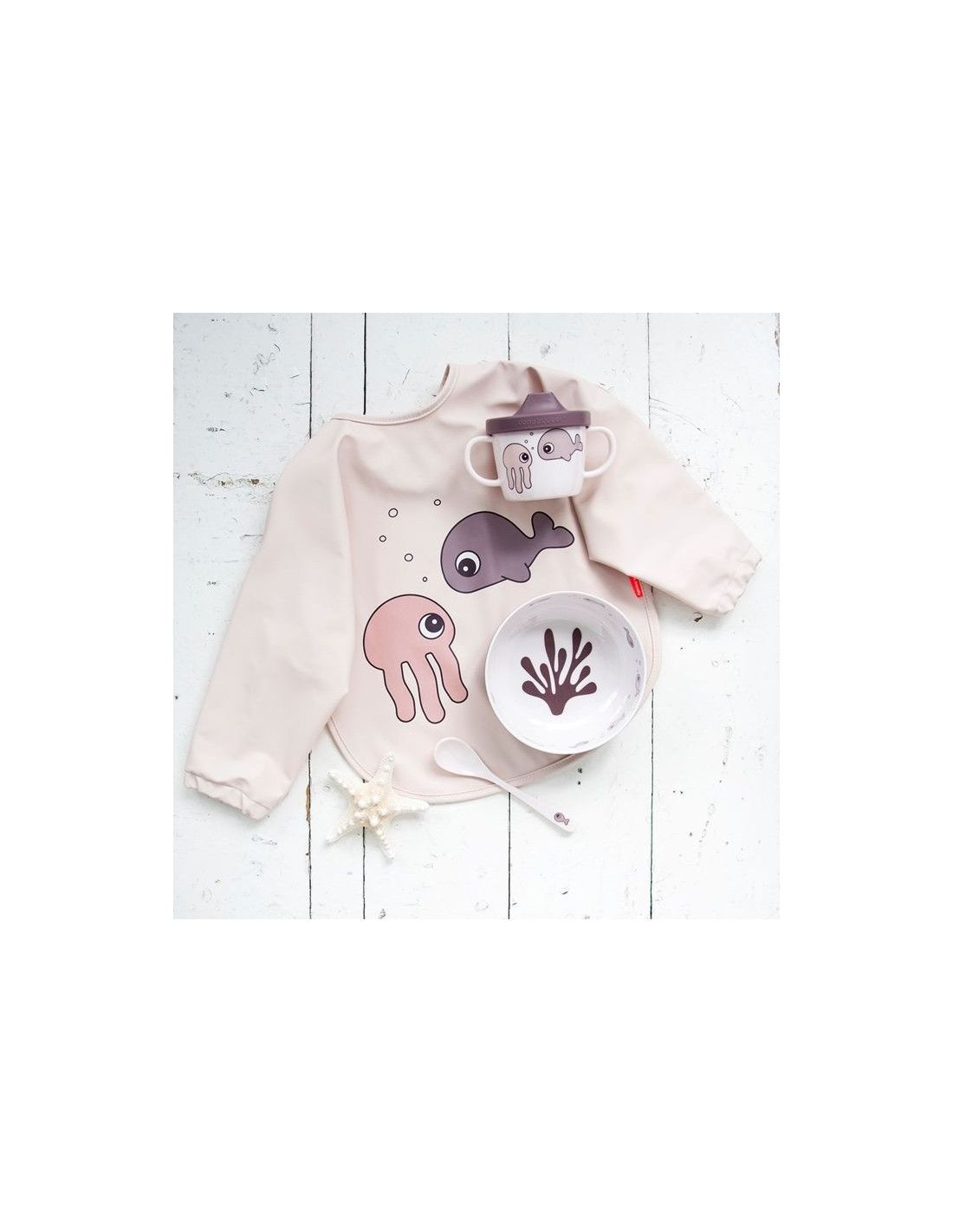 Śliniak z Rękawami Sea marki Done by Deer to praktyczny i wygodny produkt, stworzony z myślą o dzieciach w wieku od 6 miesięcy. Zaprojektowany z myślą o codziennych posiłkach oraz zabawach, ten śliniak z rękawkami pomaga utrzymać ubranko dziecka suche i czyste.