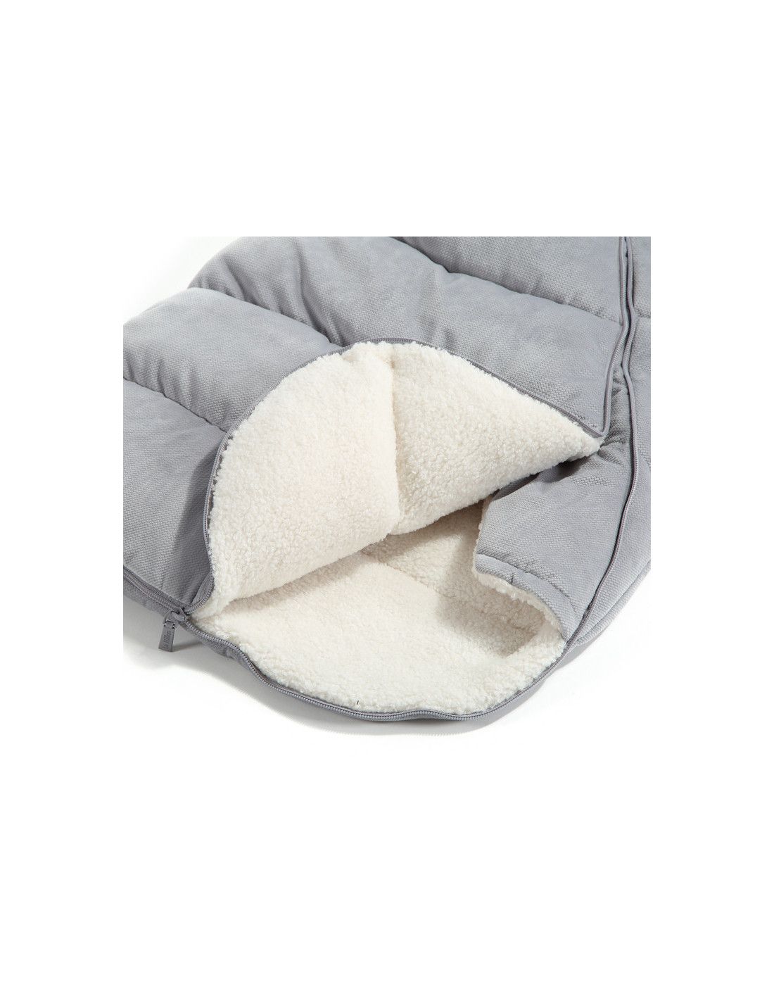 Wnętrze śpiworka to ciepła i miękka warstwa eleganckiego futerka typu Teddy. Dodatkowa wewnętrzna warstwa wodoodpornego ortalionu zabezpiecza przed wiatrem, zimnem i wilgocią. Dzięki asymetrycznemu zapięciu na zamek można go rozsunąć na boku i w dole, co daje możliwość odkrycia, wentylacji nóżek, czy np. zmiany pieluchy. Osłonę główki stanowi ciepły kaptur z gumką, która umożliwiają regulację wielkości kaptura. Otwory w tylnej części śpiworka są dopasowane do trzy punktowego systemu zabezpieczeń w większości fotelików. Śpiworek ma puszyste, antyalergiczne wypełnienie.