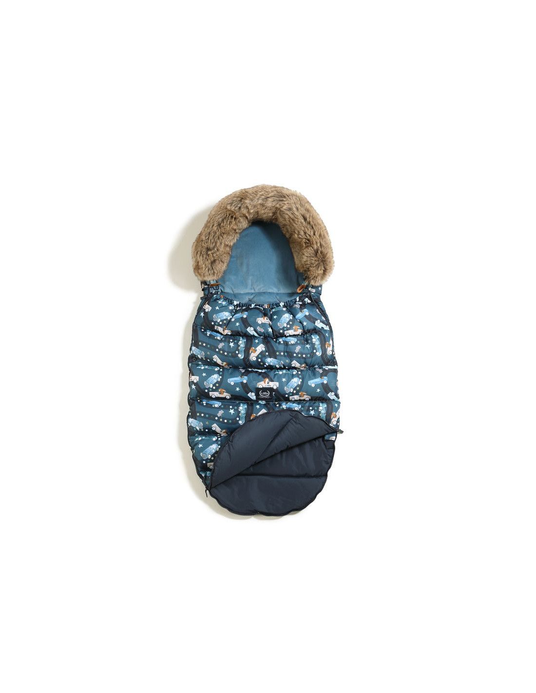- *Otwory w tylnej części śpiworka są dopasowane do 5-cio punktowego systemu zabezpieczeń w większości wózków.
