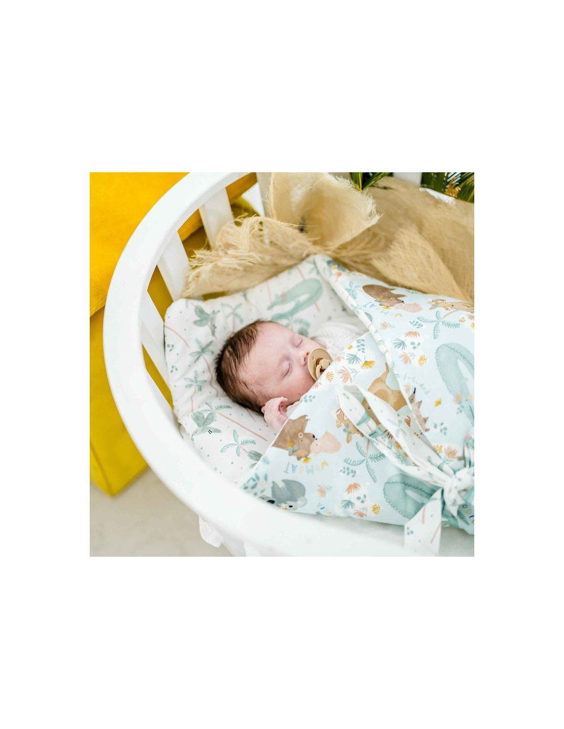 Klasyczny i uroczy rożek niemowlęcy, otuli dziecko od dnia narodzin. Rożek sprawia, że dziecko czuje się bezpiecznie jak w brzuchu Mamy, a dzięki temu uspokaja maluszka i ułatwia mu zasypianie. Uszyty z najwyższej jakości bawełny, wypełniony dwiema warstwami wypełnienia. Pierwsza warstwa to standardowe rożkowe wypełnienie, które jest wystarczająco sztywne, aby pewniej i bezpieczniej trzymać maluszka już od pierwszych chwil. Druga warstwa jest dużo cieńsza i bardziej puszysta, aby maluszkowi się milej w nim leżało. Rożek posiada też wszyte wstążki, które umożliwiają regulowanie jego rozmiaru.
