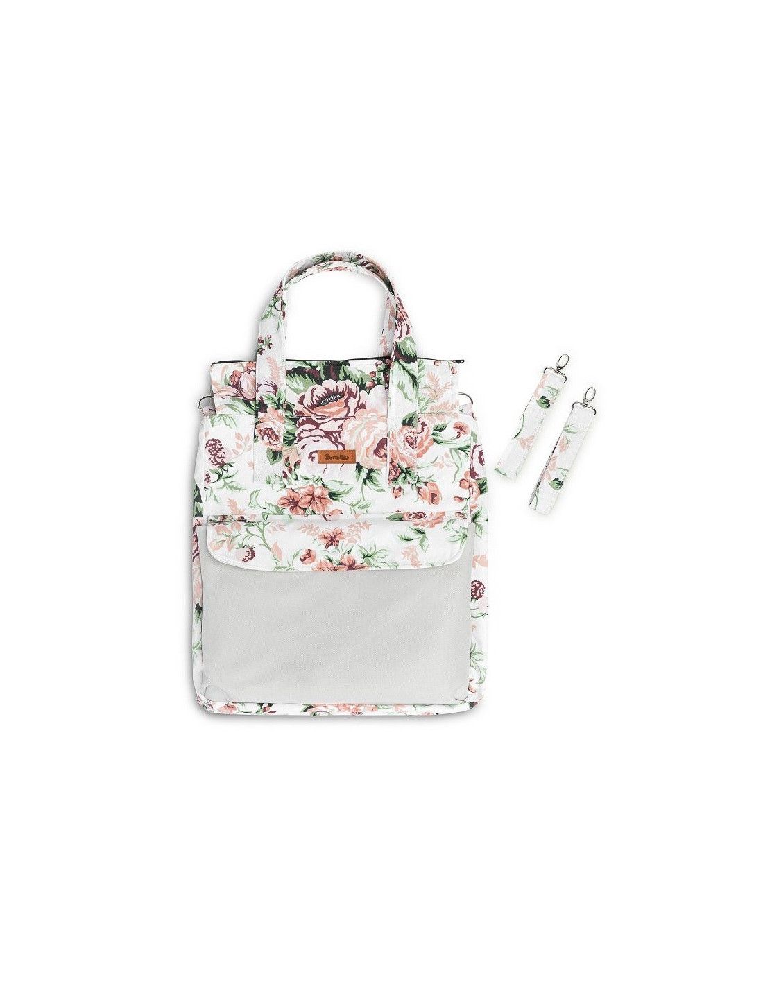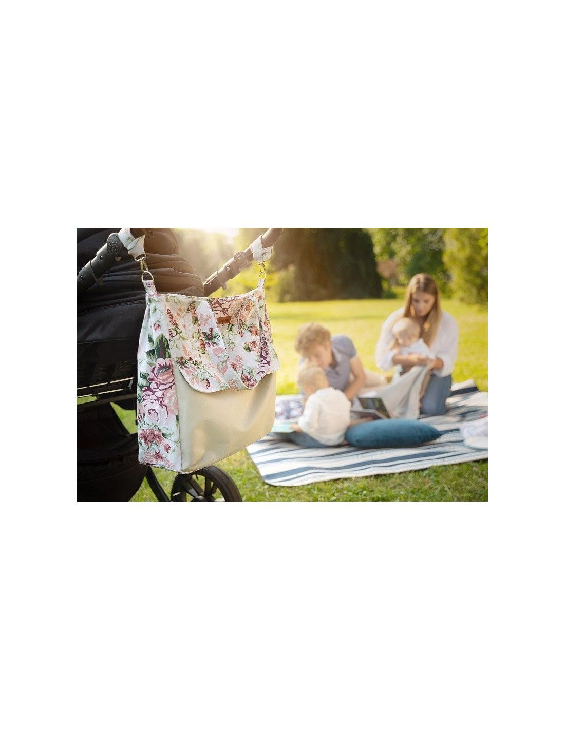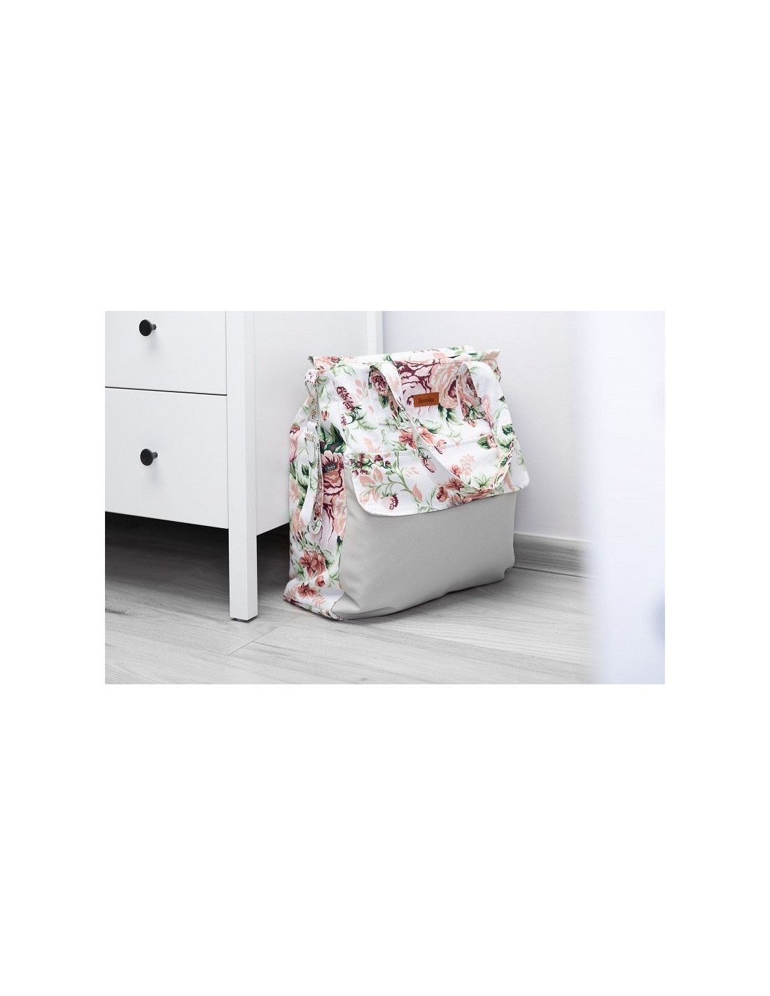 Duża pojemna torba dla mamy, świetnie nadająca się na spacer, zakupy czy do szpitala. Dzięki swojemu dużemu rozmiarowi, pomieści wszystkie niezbędne akcesoria. Przednia kieszeń zamykana na dyskretny magnes pomieści wszystkie rzeczy, które powinny być pod ręką. Wnętrze torby wykończone jest poliestrową podszewką. Nieodzownym elementem torby są wytrzymałe, kolorowe uchwyty, dzięki którym można ją zawiesić na ramie wózka.