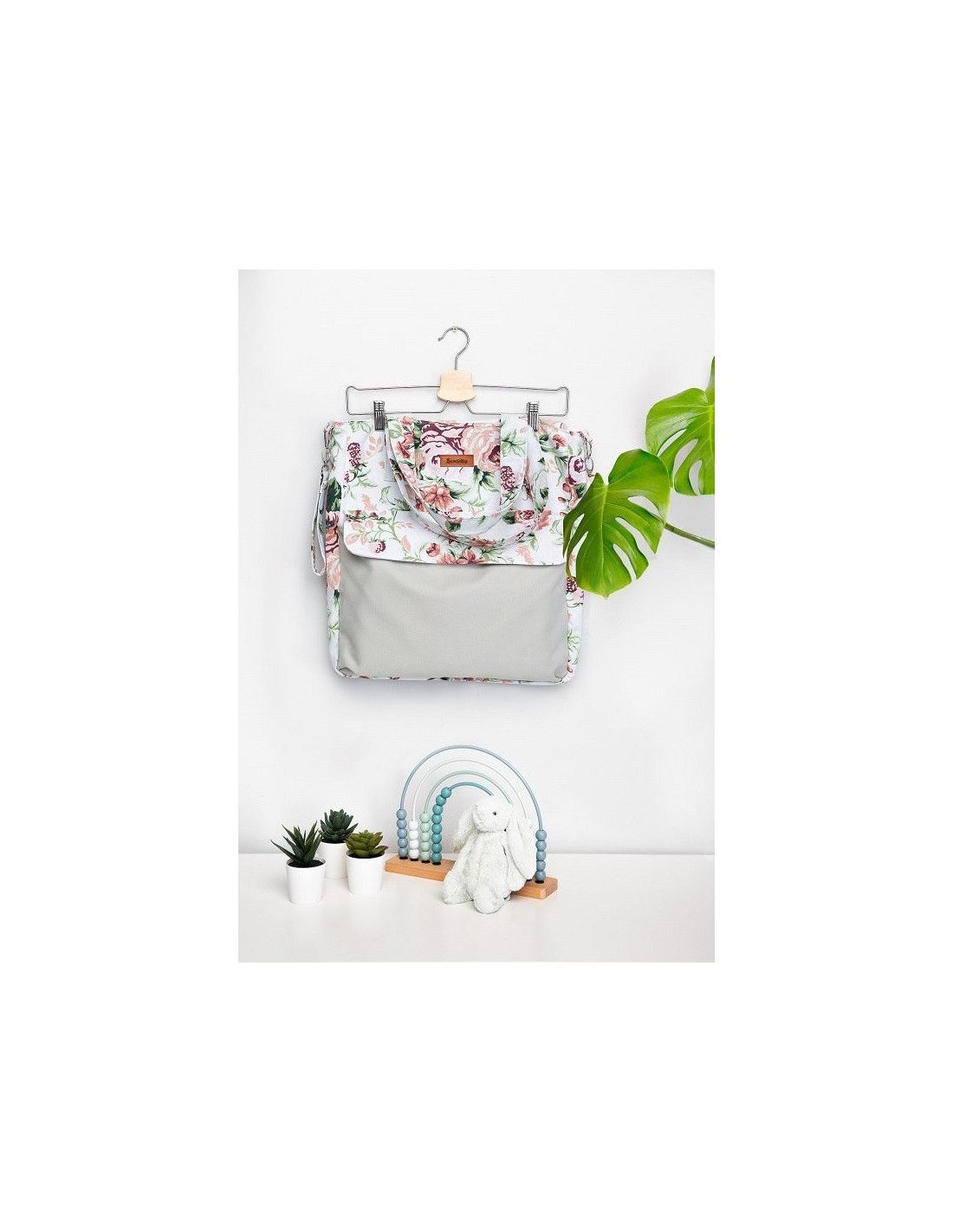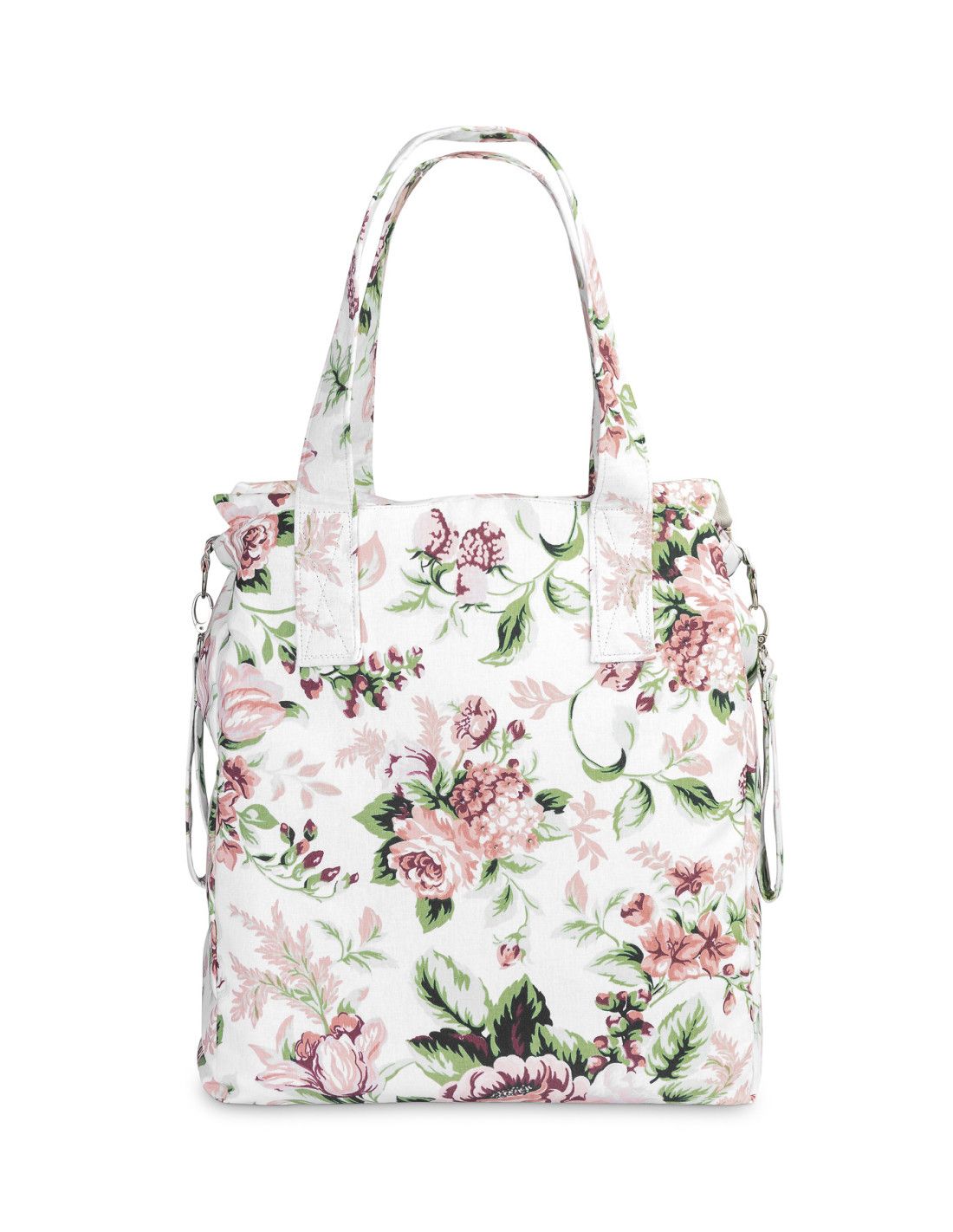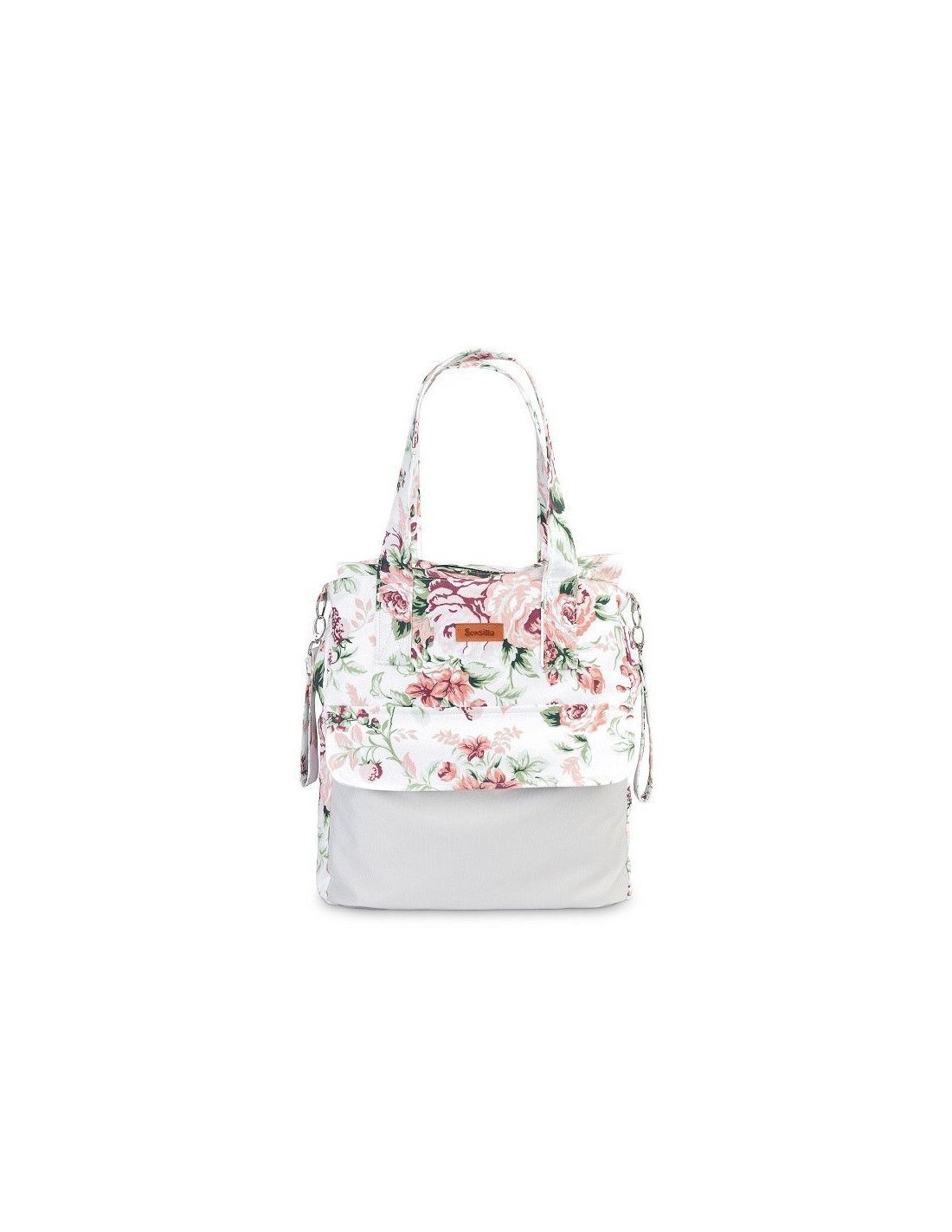 Duża pojemna torba dla mamy, świetnie nadająca się na spacer, zakupy czy do szpitala. Dzięki swojemu dużemu rozmiarowi, pomieści wszystkie niezbędne akcesoria. Przednia kieszeń zamykana na dyskretny magnes pomieści wszystkie rzeczy, które powinny być pod ręką. Wnętrze torby wykończone jest poliestrową podszewką. Nieodzownym elementem torby są wytrzymałe, kolorowe uchwyty, dzięki którym można ją zawiesić na ramie wózka.