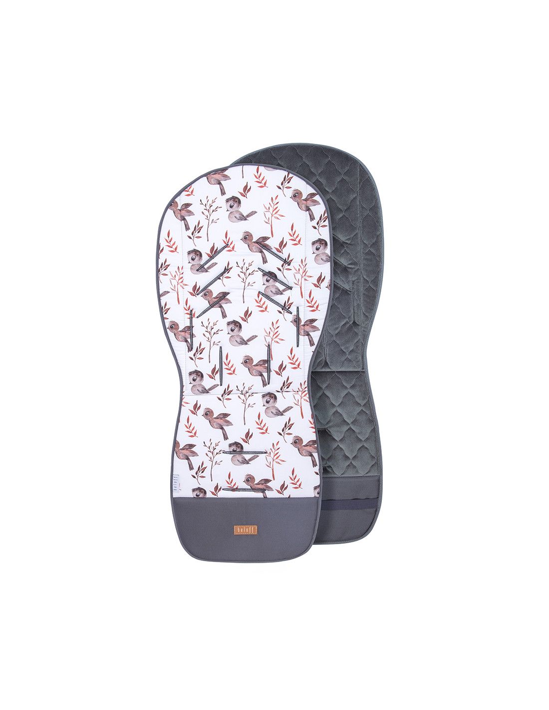 Innowacyjna dwustronna wkładka do wózka , z tą wkładką wystrój twojego wózka nigdy ci się nie znudzi. Pokryta z jednaj strony bawełna 100% a z drugiej niezwykle miękkim i delikatnym velvetem pikowanym .