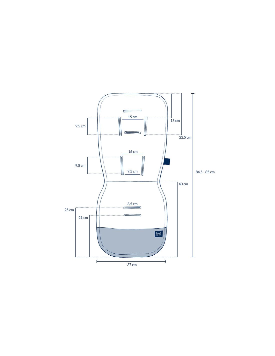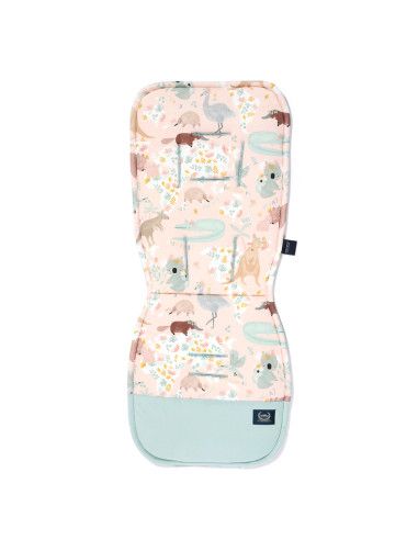 Wkładka zapewnia maksymalny komfort podczas spacerów, chroni skórę dziecka przed kontaktem z syntetycznym, nieprzyjemnym obiciem wózka, zapobiega zabrudzeniom wózka i sprawia, że wygląda unikatowo i stylowo. Jedna strona wkładki wykonana jest z organicznej bawełny jersey - miękkiej, przewiewnej i delikatnej, a druga strona to miły w dotyku i elegancki velvet. Wkładka jest wypełniona grubą i bardzo sprężystą pianką, dzięki której dziecku jest komfortowo i wygodnie. Wkładka wyposażona jest w kompatybilny z większością wózków system otworów na pasy oraz w dwie elastyczne gumki, które umożliwiają zamocowanie produktu w kilka sekund.