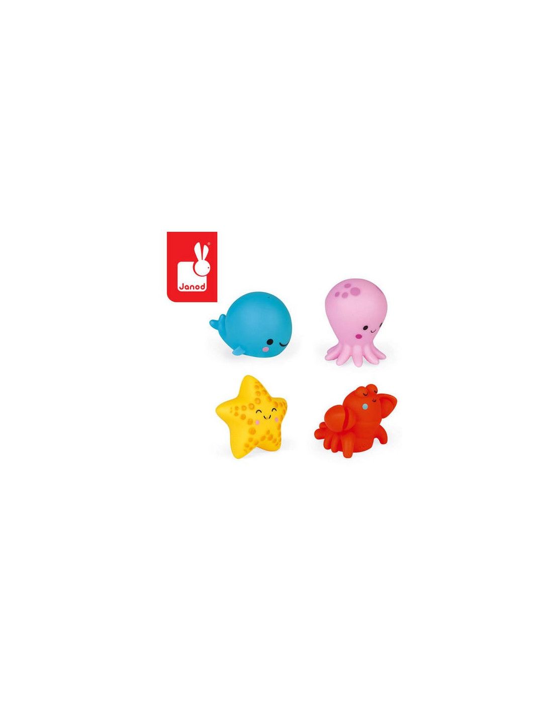 Zestaw uroczych zwierzątek morskich francuskiej marki JANOD to 4 wytrzymałe zabawki z wodoodpornego tworzywa. W skład kompletu wchodzą: wieloryb, ośmiornica, krab i rozgwiazda. Wszystkie są poręczne i przyjemne w dotyku. Ściśnięte pod wodą, napełniają się, a po ich ponownym naciśnięciu, tryskają wodą. Mają intensywne, ładne kolory. Tworzenie opowieści o ich przygodach to doskonały sposób na wyciszenie i idealny umilacz czasu, spędzanego w wannie. Zabawkę zaprojektowano we Francji. Zapakowane jest w estetyczne pudełko z uchwytem. Idealnie nadaje się na prezent.