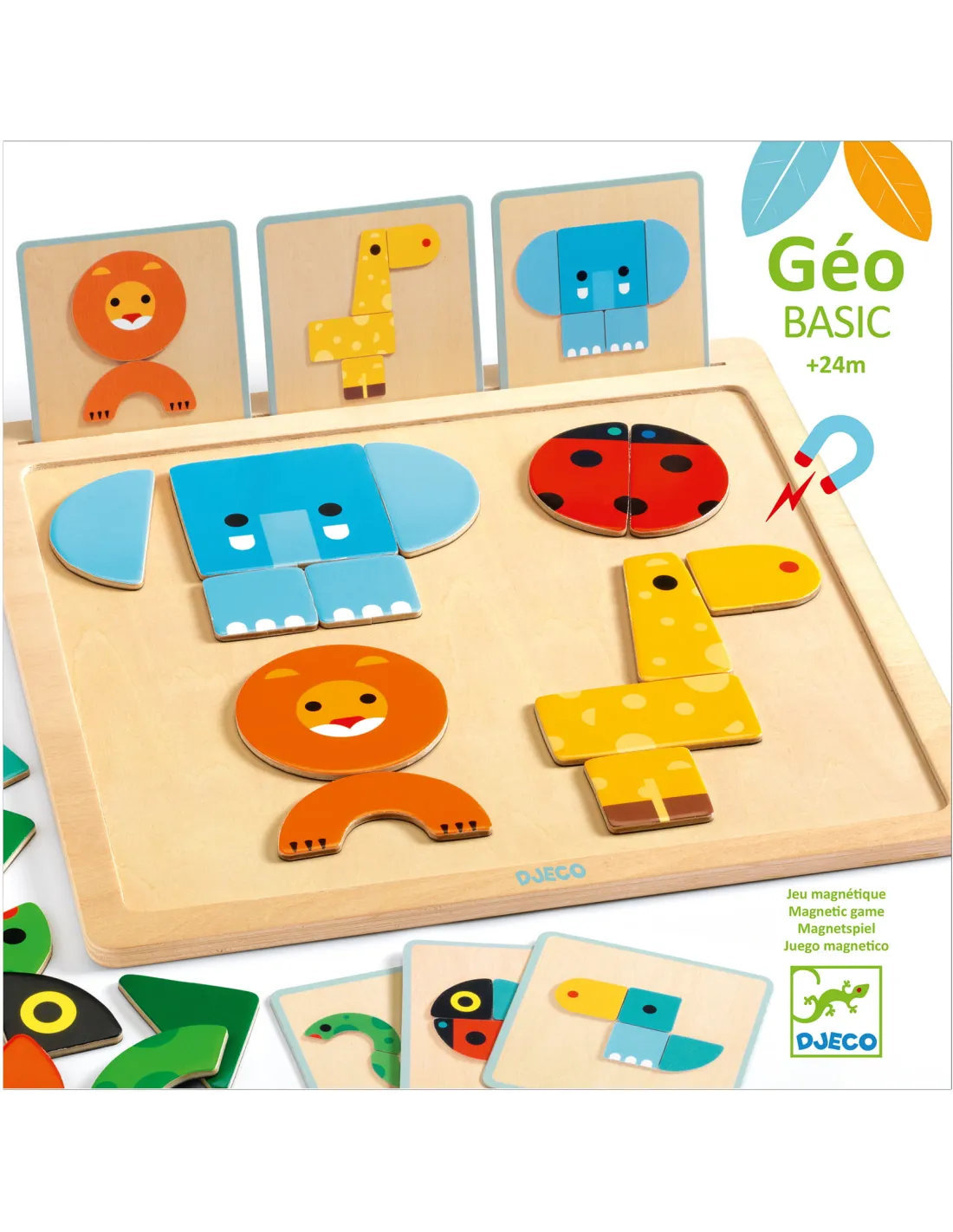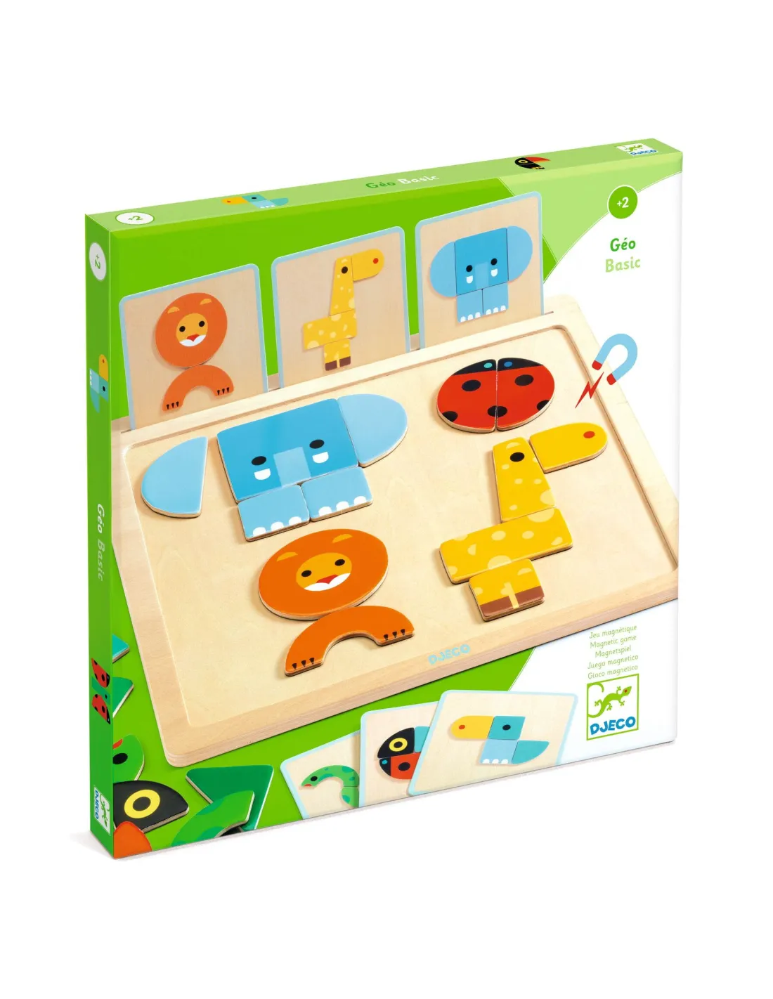 Drewniana układanka magnetyczna dla dzieci GEO BASIC Djeco – edukacyjna zabawka dla maluchów od 2 lat