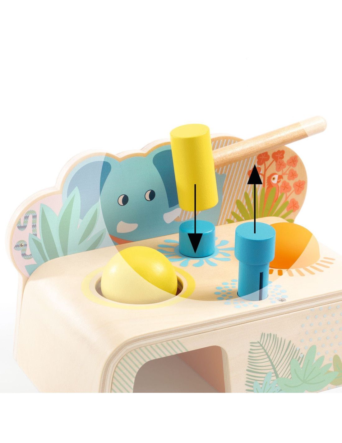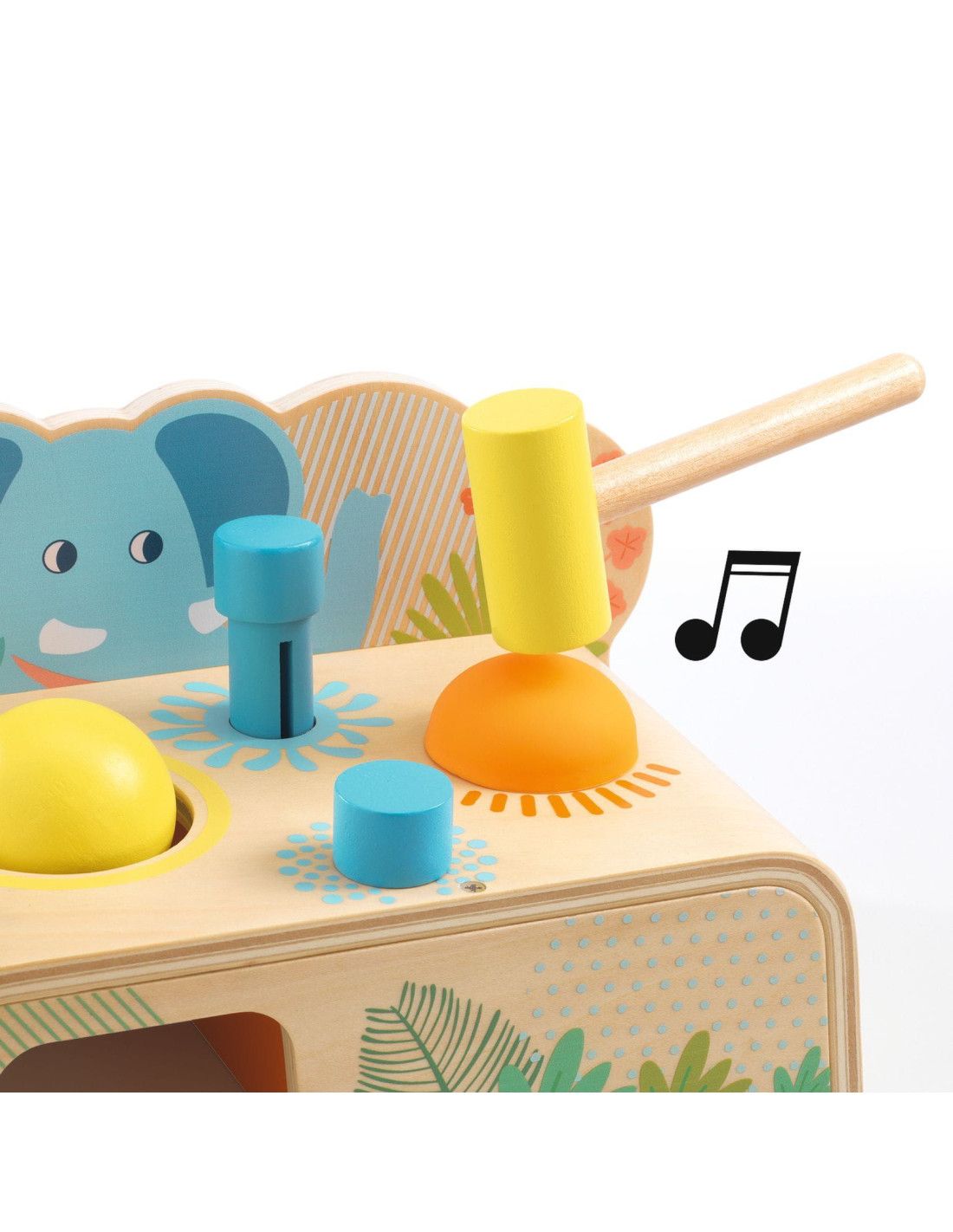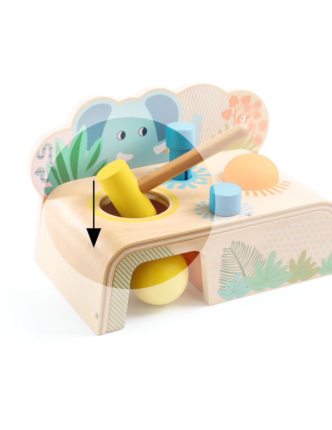 Drewniana wbijanka MULTI TAP Djeco – idealna zabawka wczesnorozwojowa dla dzieci od 18. miesiąca życia
