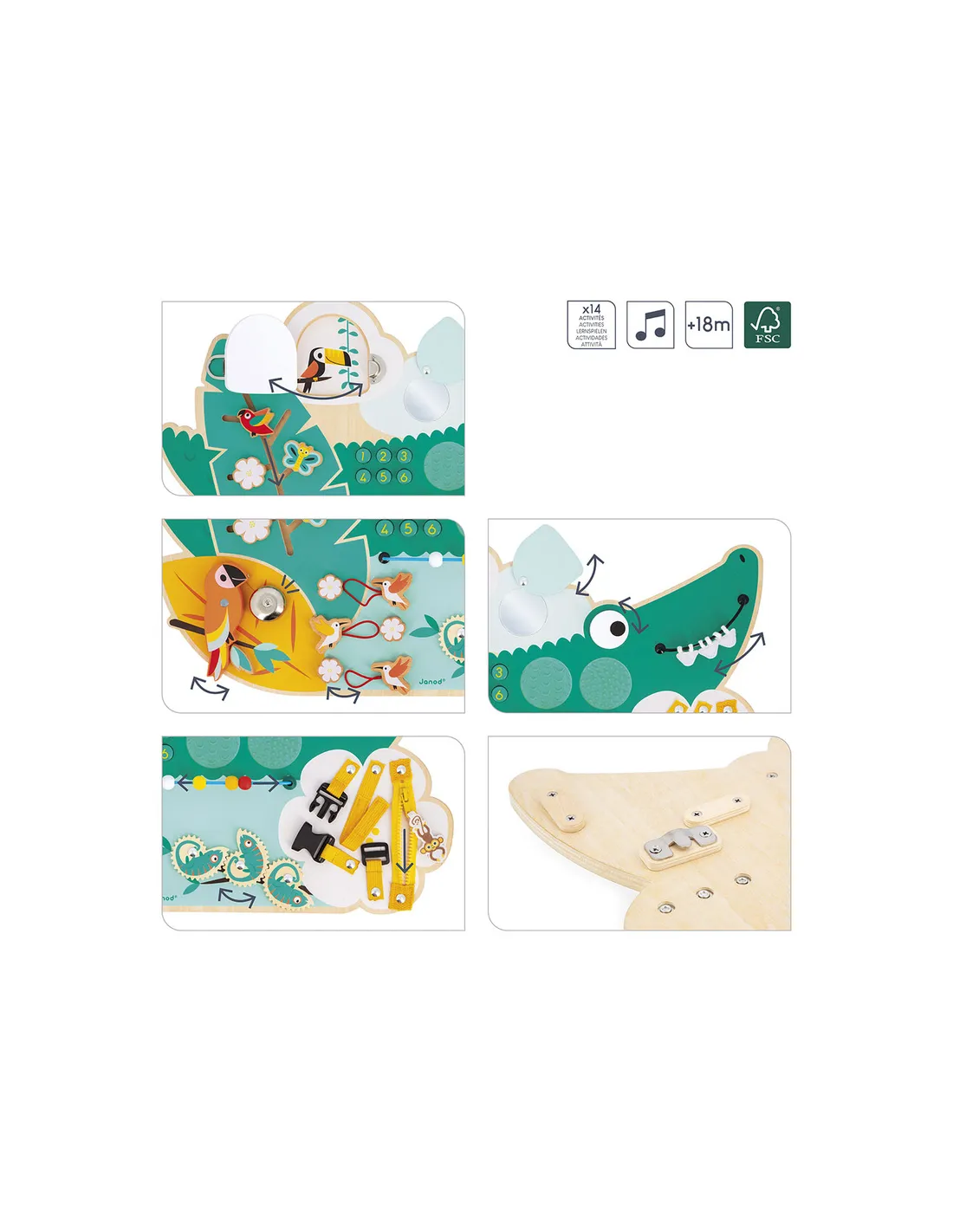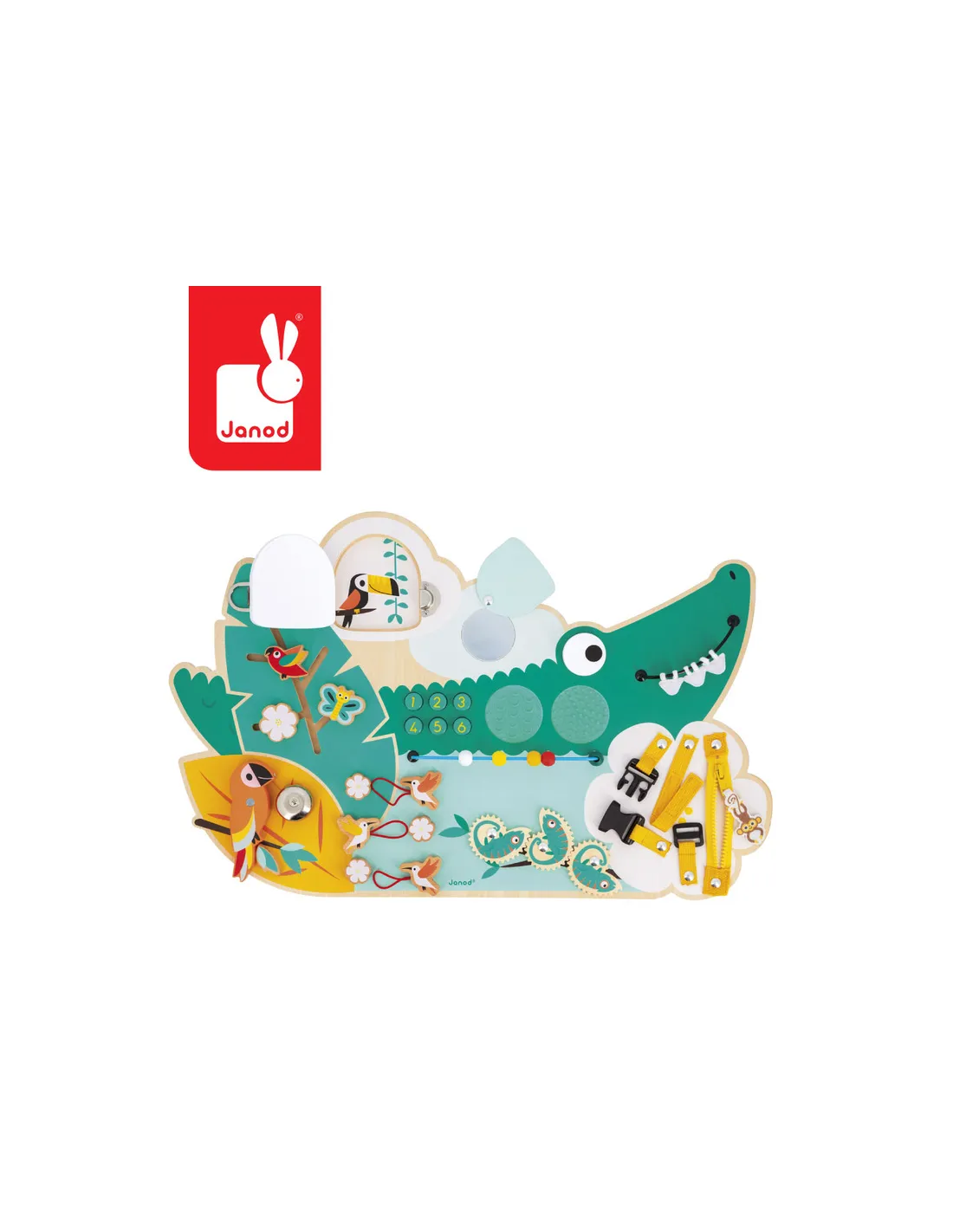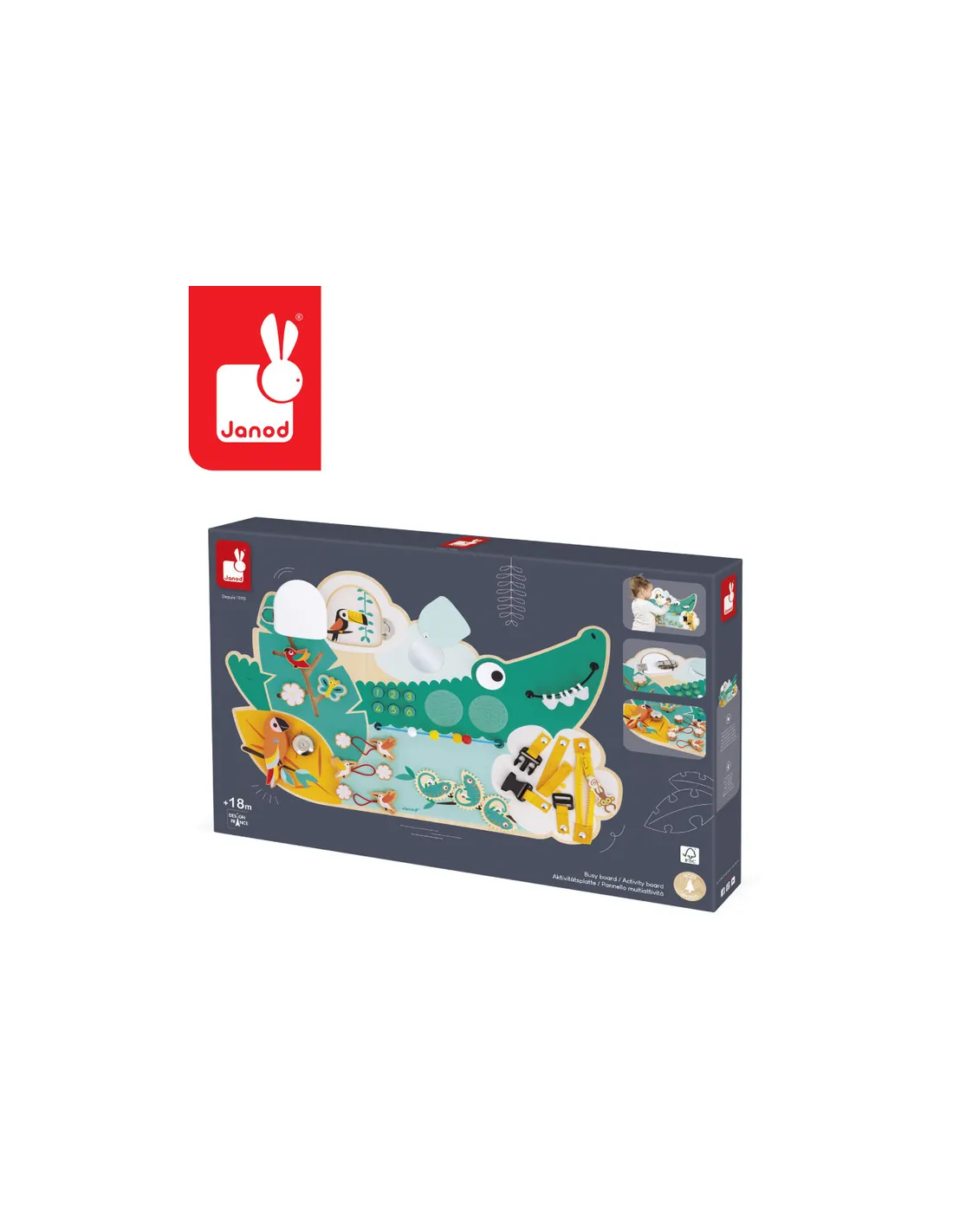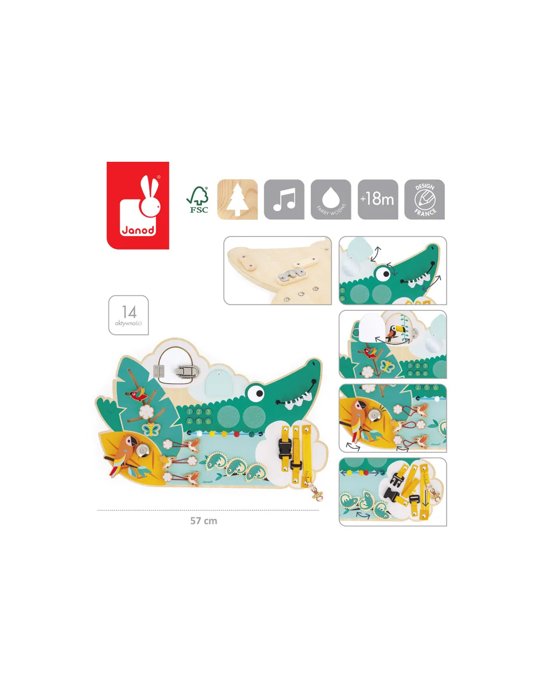 Duża drewniana tablica manipulacyjna 14 aktywności Krokodyl Tropik 18m+ Janod