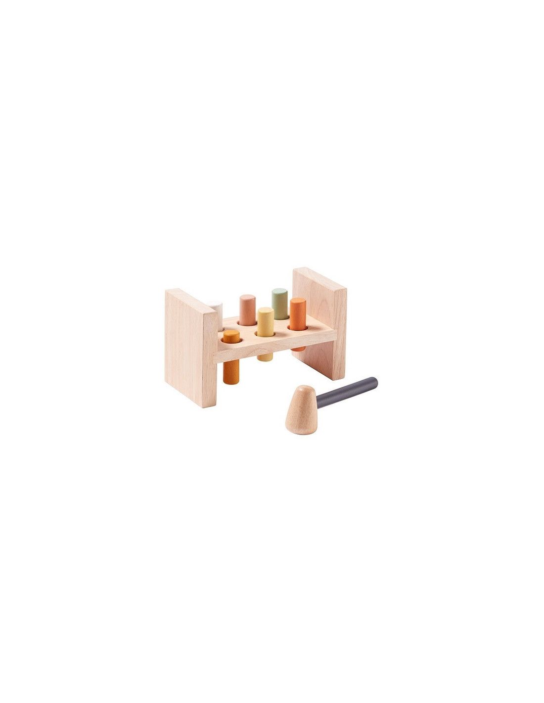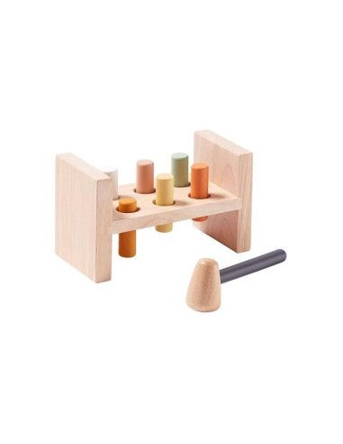 Drewniane klocki z młotkiem łączą w sobie najlepsze cechy zabawek manualnych oraz rozwijających zdolności rozumowania. Podczas zabawy dzieci ćwiczą wyobraźnię przestrzenną, koordynację wzrokowo-ruchową i umiejętności rozwiązywania problemów. Zestaw składa się z 4 klocków oraz młotka. Drewniana podstawa na klocki, posiada specjalne miejsce na młotek, dla łatwiejszego przechowywania całego zestawu. Zarówno klocki jak i pudełko zostały wykonane z wysokiej jakości materiałów. Zabawka inspiruje malucha do kreatywnej zabawy.