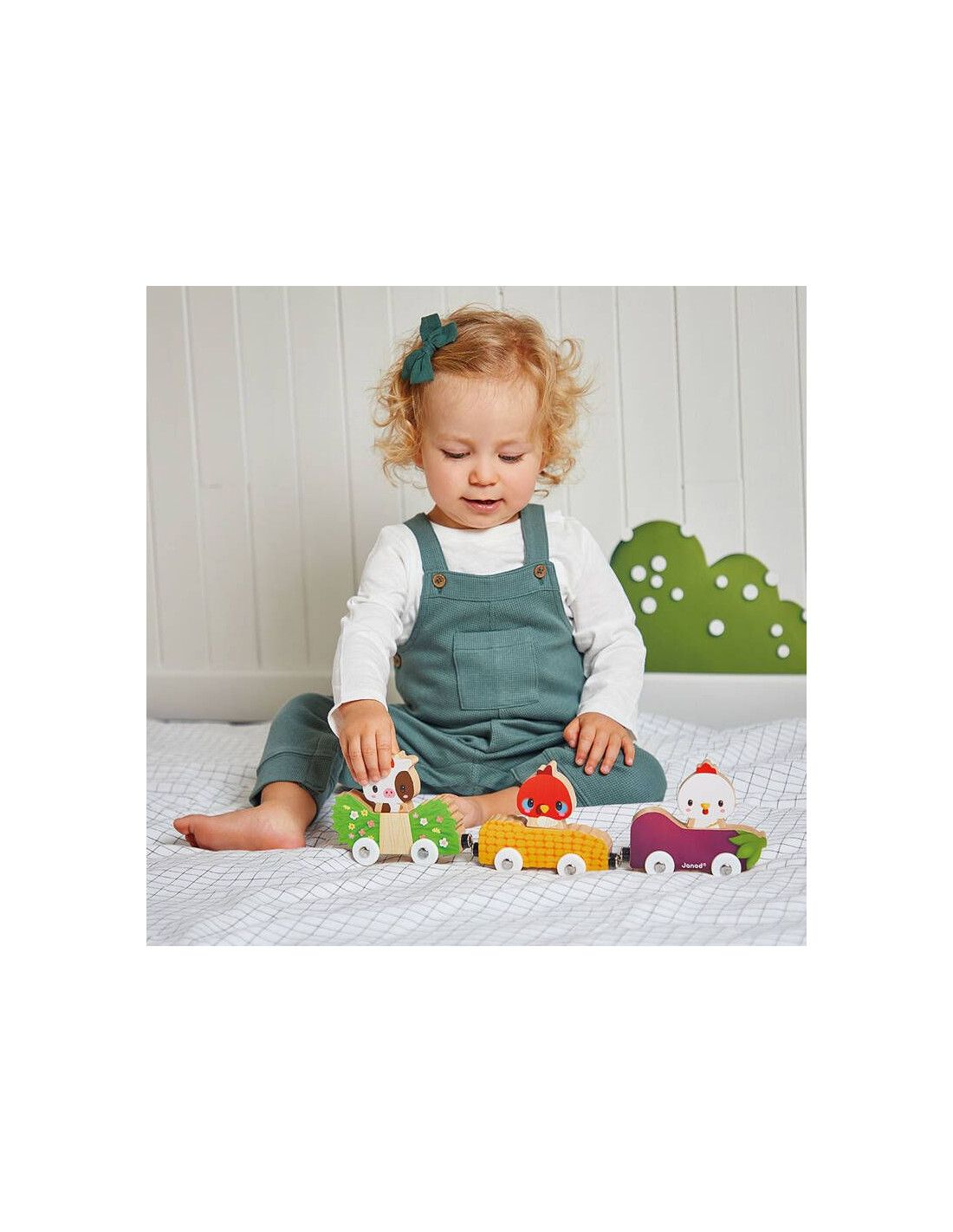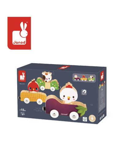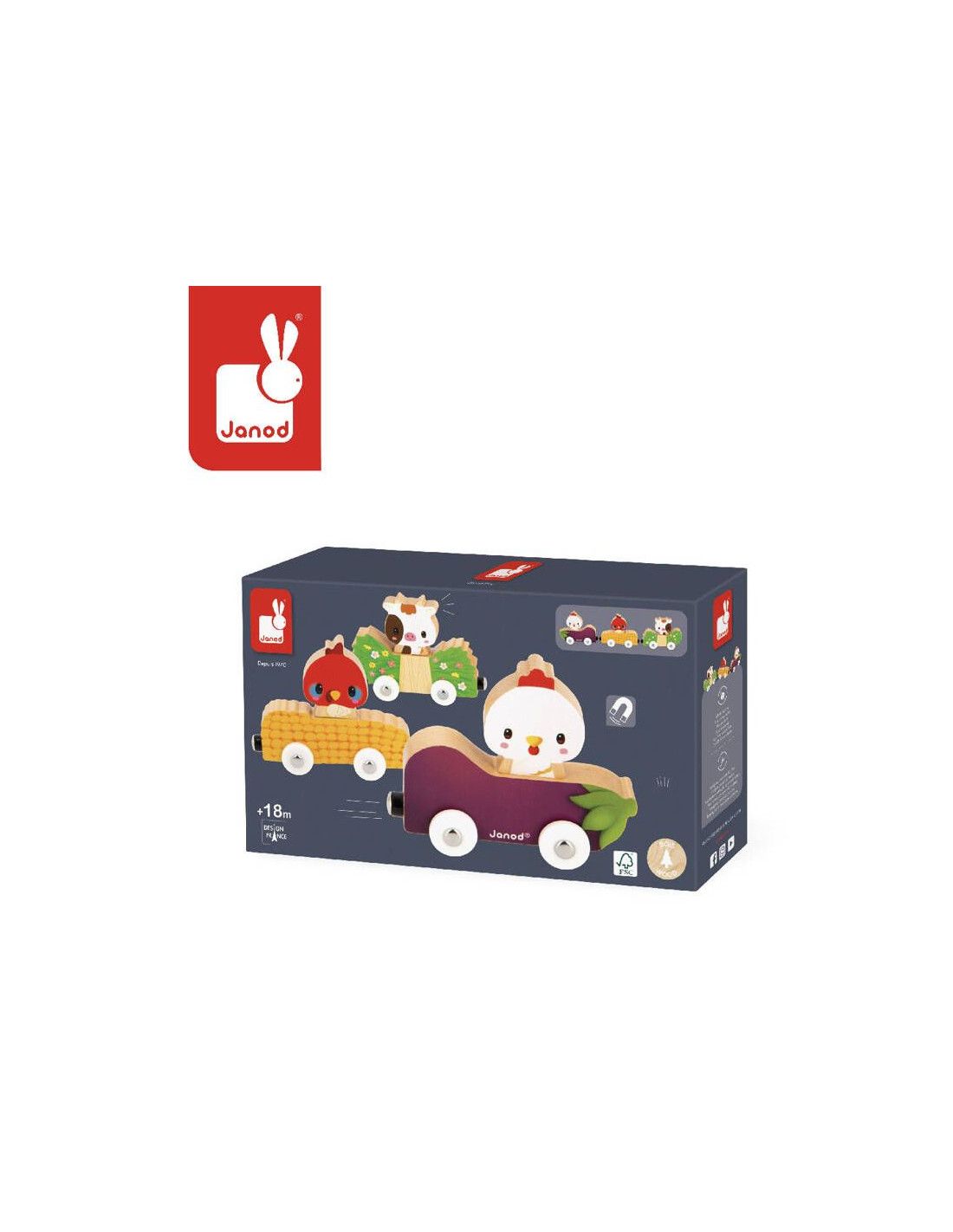 Janod Magnetyczne Drewniane Pojazdy ze Zwierzątkami Gospodarskimi Farma 18 m+