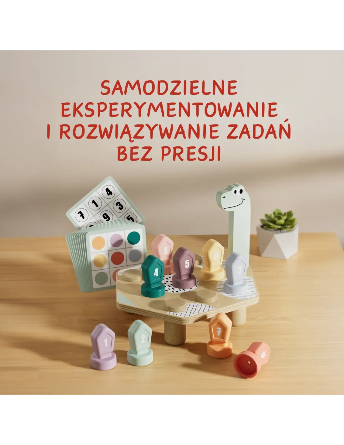 Gra edukacyjna Dino Topbright zachęca do samodzielnego rozwiązywania zadań bez presji. Dziecko może eksperymentować, popełniać błędy i uczyć się we własnym tempie, co jest zgodne z zasadami pedagogiki Montessori. Zabawka wspiera rozwój niezależności i poczucia sprawczości.