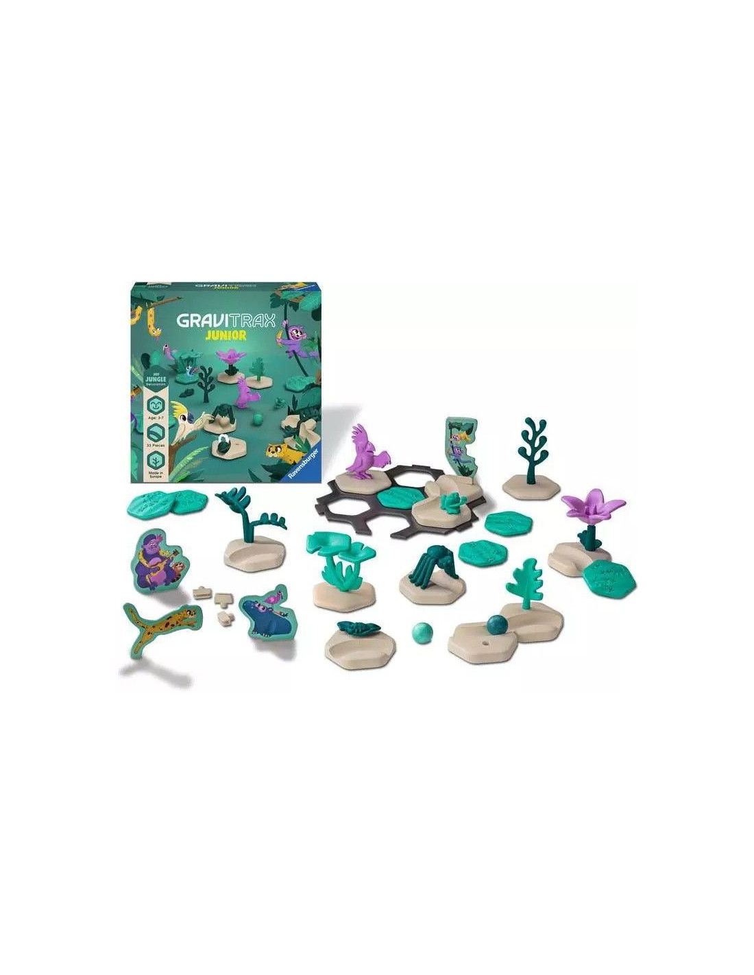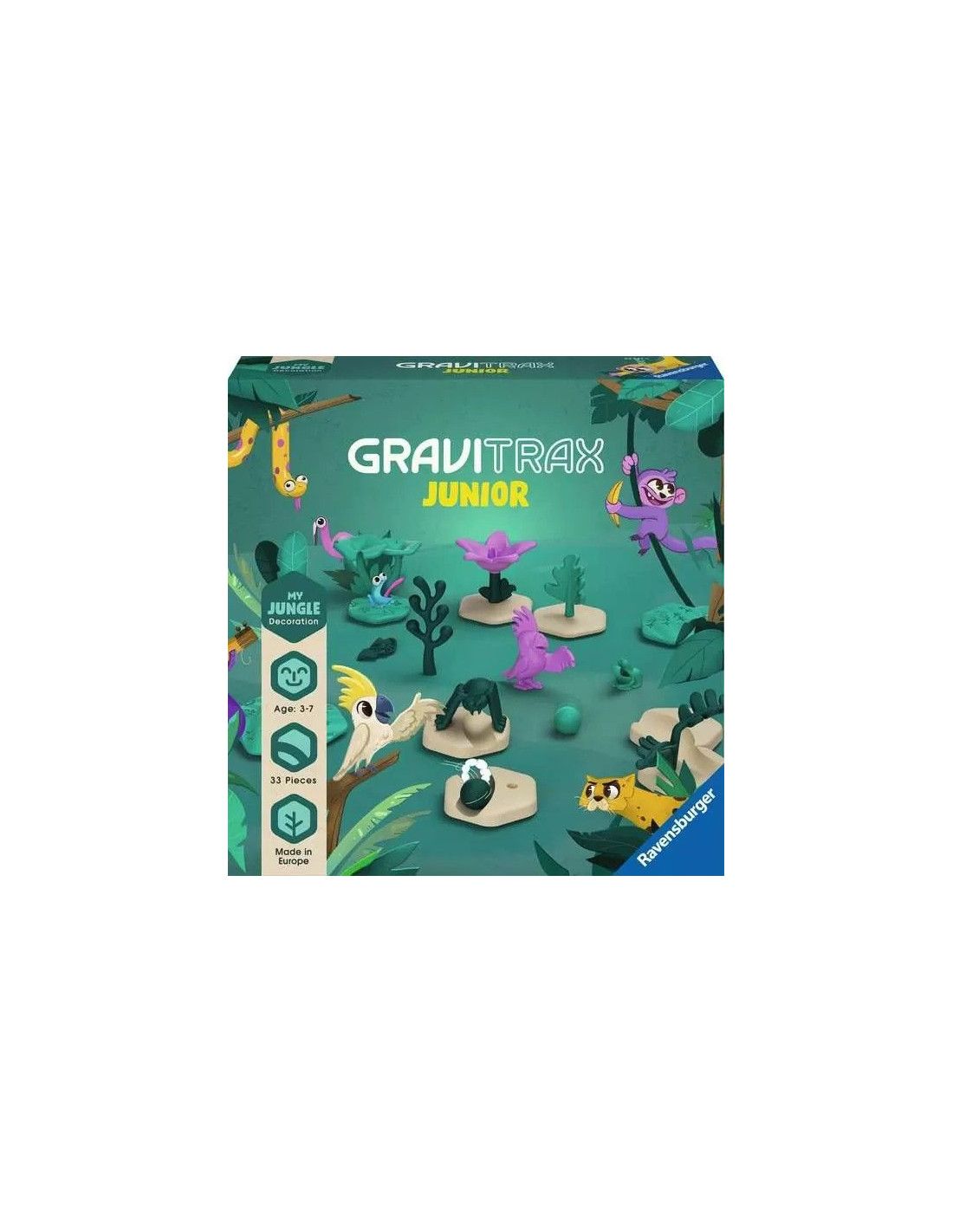 Ten motyw pełen tropikalnych zwierząt i roślin pozwala na jeszcze bardziej kreatywną i angażującą zabawę. Idealny sposób, aby dodać nowy wymiar do zestawu startowego GraviTrax Junior.