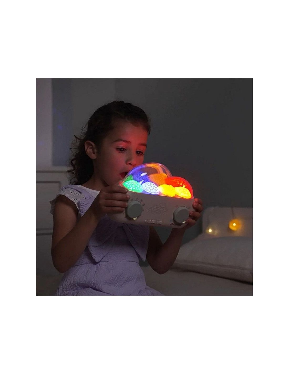 - Relaksujące dźwięki i świetliste projekcje wspomagają spokojny sen.