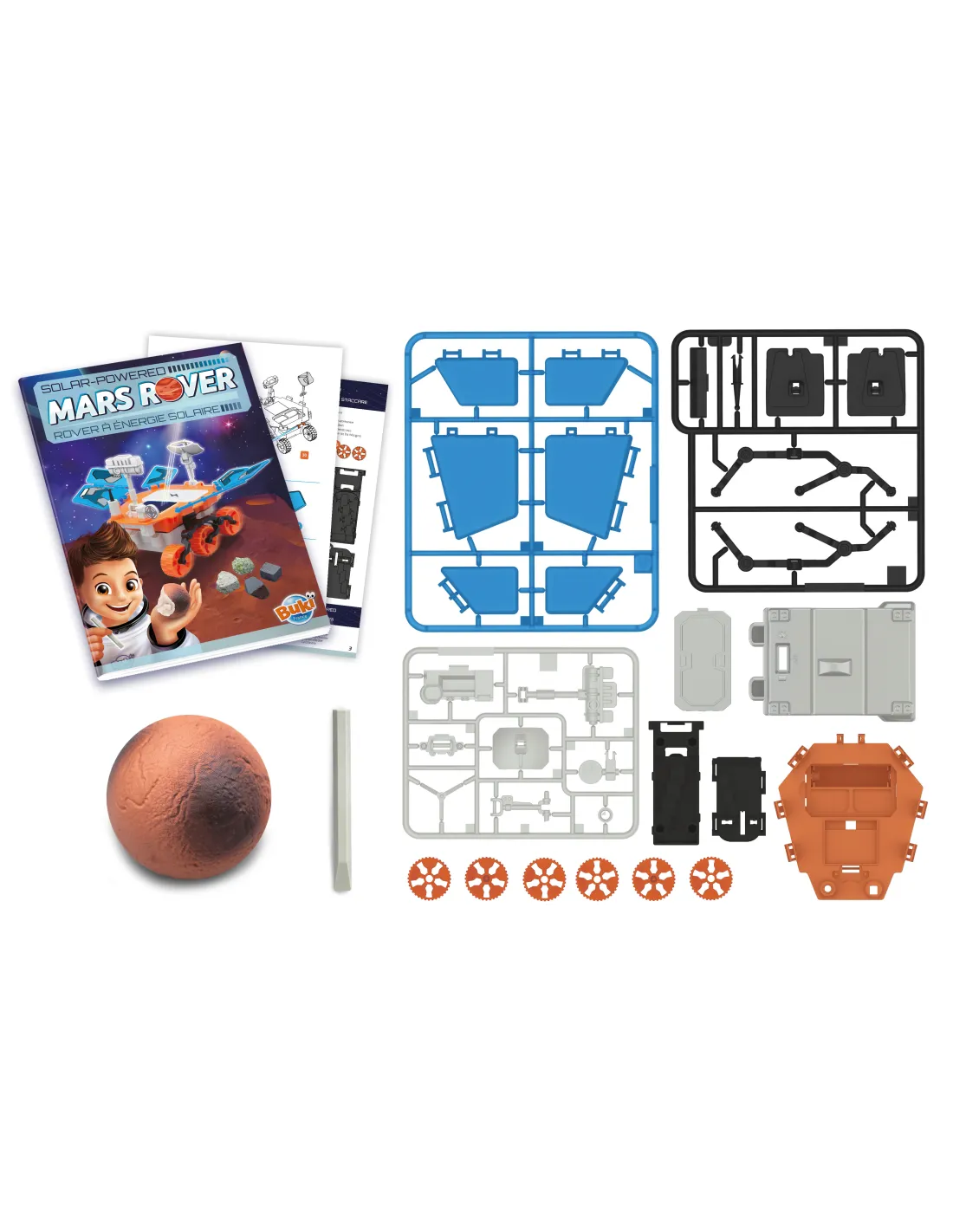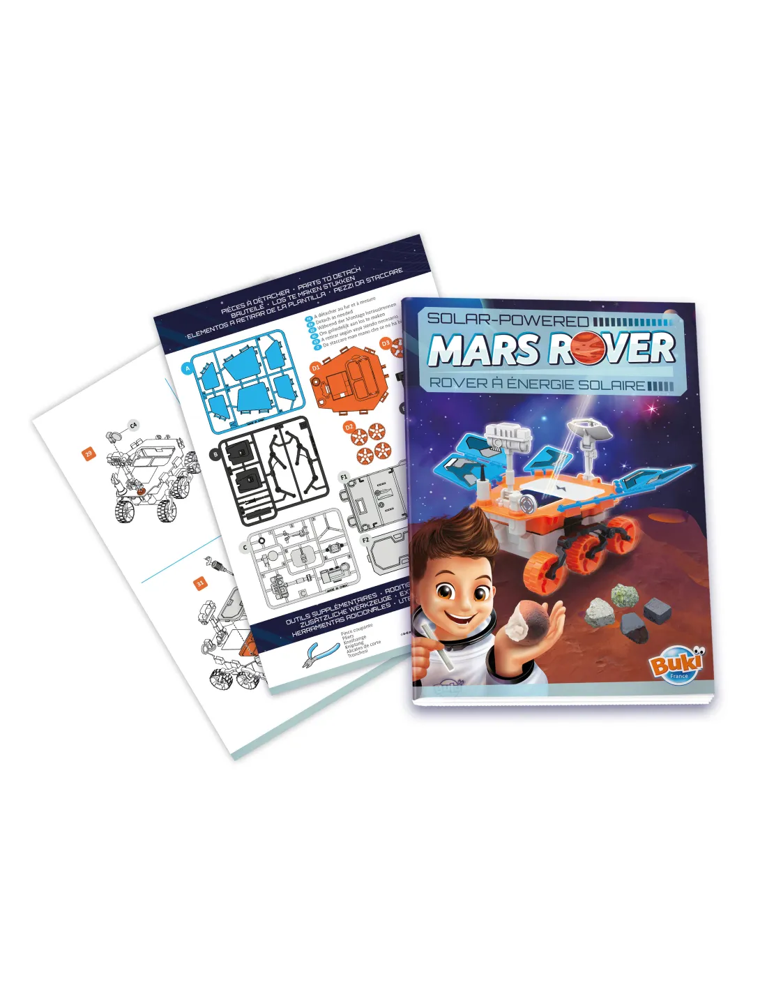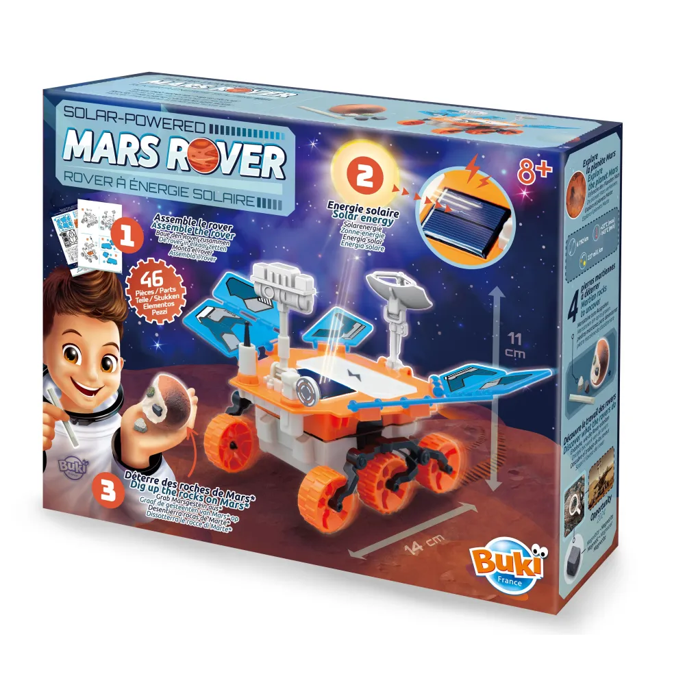 Łazik marsjański Buki to nie tylko zabawka, ale także mini laboratorium kosmiczne, które uczy poprzez zabawę. Dziecko samodzielnie montuje model robota zasilanego panelem solarnym lub baterią LR06-AA, dzięki czemu może kontynuować eksperymenty niezależnie od pogody.
