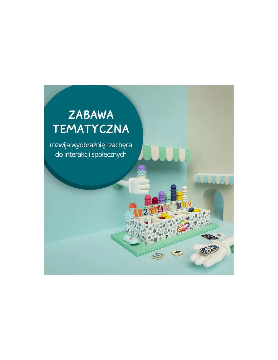 Zachęca do kreatywnej zabawy – dzieci wcielają się w role sprzedawcy i klienta, rozwijając wyobraźnię i zdolności społeczne.