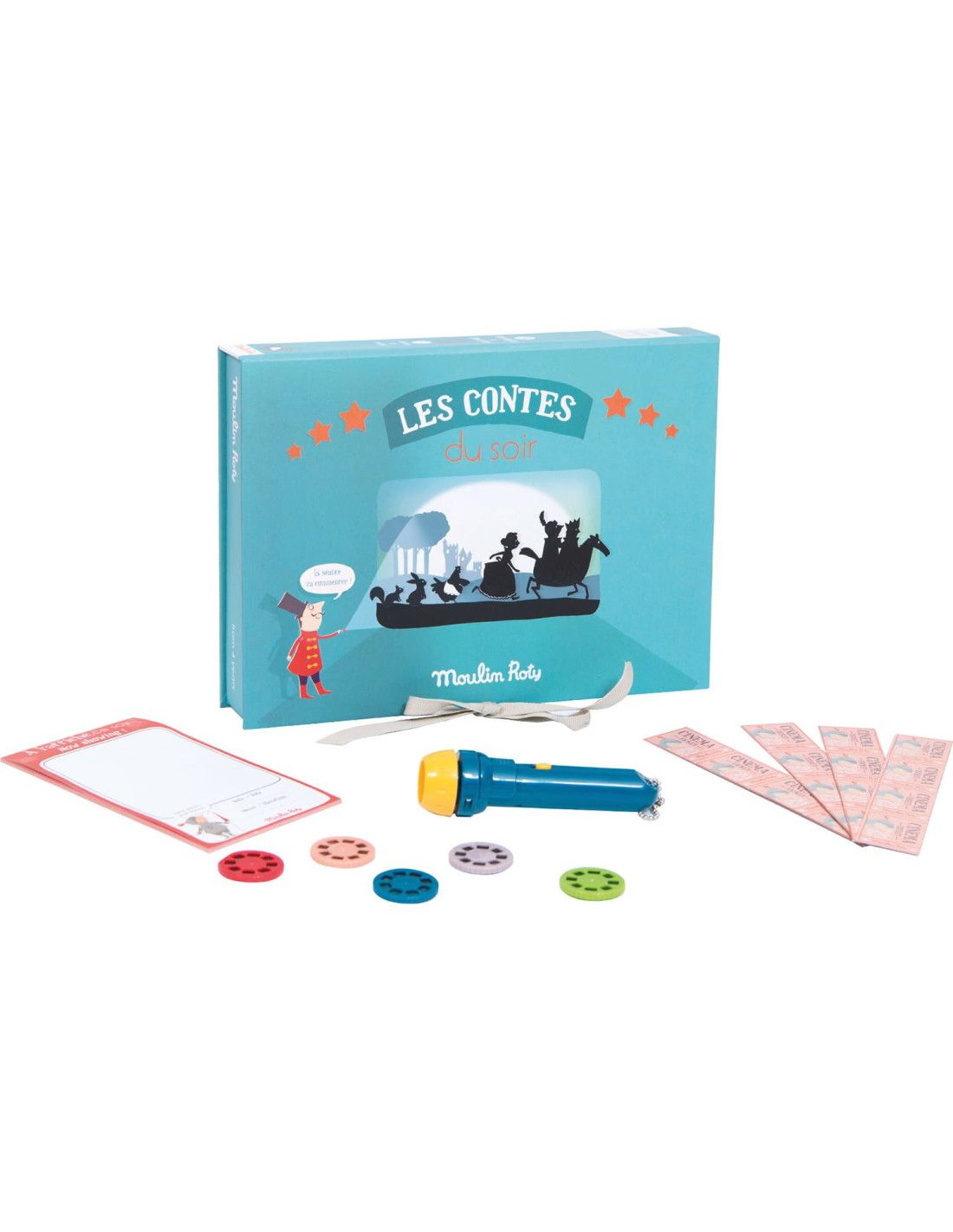 Zestaw Kino z Projektorem 5 Opowieści marki Moulin Roty to niezwykła propozycja dla małych miłośników kina i kreatywnej zabawy. Wcielając się w rolę prawdziwego kinomana, dzieci mogą urządzić niezapomniane seanse filmowe w zaciszu swojego pokoju.