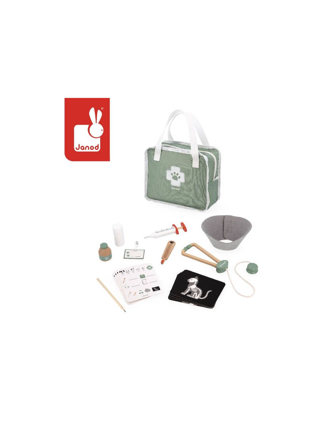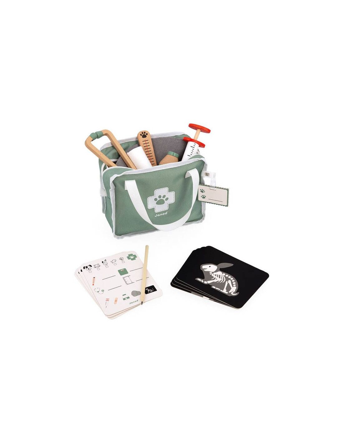 Zestaw Weterynarza francuskiej marki Janod to doskonała zabawka dla małych miłośników zwierząt, którzy uwielbiają naśladować dorosłych i odtwarzać codzienne sytuacje. Dzięki temu zestawowi każde dziecko może poczuć się jak prawdziwy weterynarz, dbając o zdrowie swoich pluszowych pacjentów.