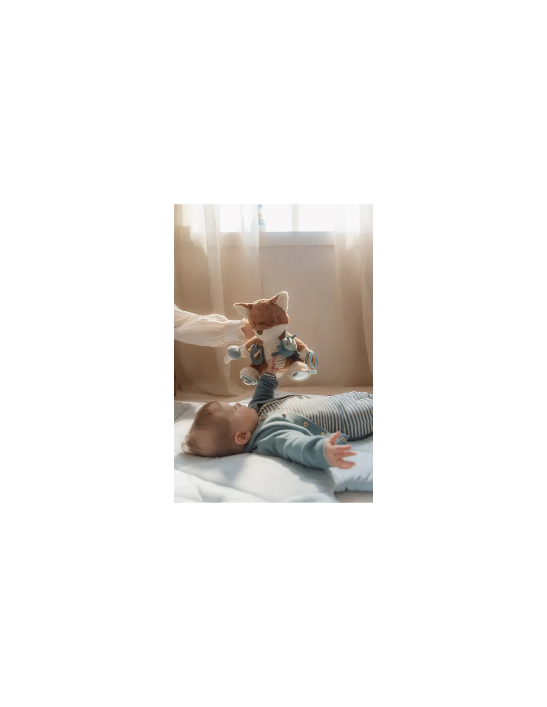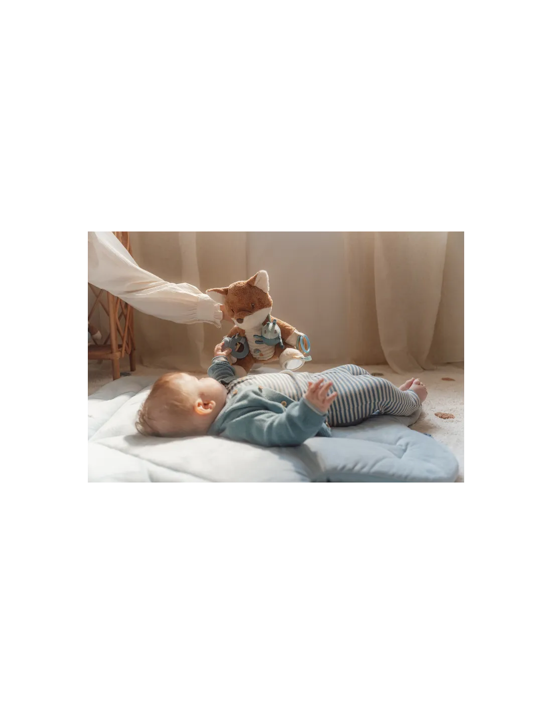 Ten uroczy lisek z kolekcji Forest Friends skrywa w sobie wiele niespodzianek – na jego ramieniu znajduje się szeleszczący żuczek, w łapkach ukryto dźwięki grzechotki, a grzybek i kolorowe metki zachęcają do chwytania i poznawania różnych faktur. Lusterko oraz obręcze do zabawy stymulują ciekawość dziecka, ucząc je zależności przyczynowo-skutkowych.