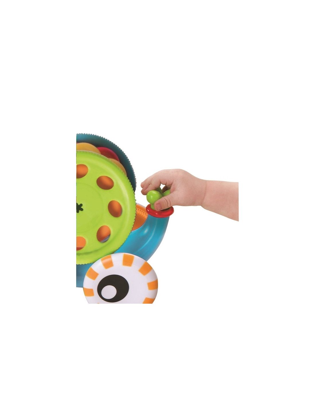 Muzyczny Ślimak to bardzo pomysłowa zabawka, stymulująca do odkrywczej zabawy oraz nauki raczkowania. Wesoła muzyka oraz przyjemny wygląd zachęca do zabawy. Ślimaczek jest zabawką 2w1. Jego "domek" to regularnych rozmiarów nakładanka wieloma elementami o różnych kształtach oraz piszczałką. Rekomendujemy pierwszą zabawę dziecka ślimaczkiem razem z rodzicem, w celu oswojenia się z przedmiotem.