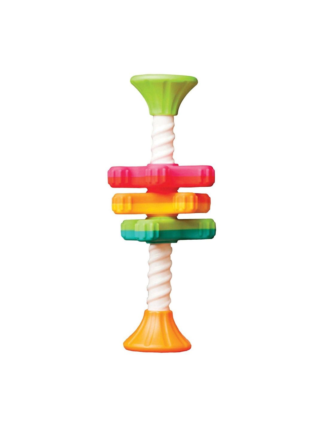 Każde śmigiełko jest dwukolorowe, posiada wypustki i łatwy do chwytania kształt, co dodatkowo stymuluje rozwój sensoryczny maluszka.