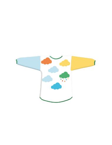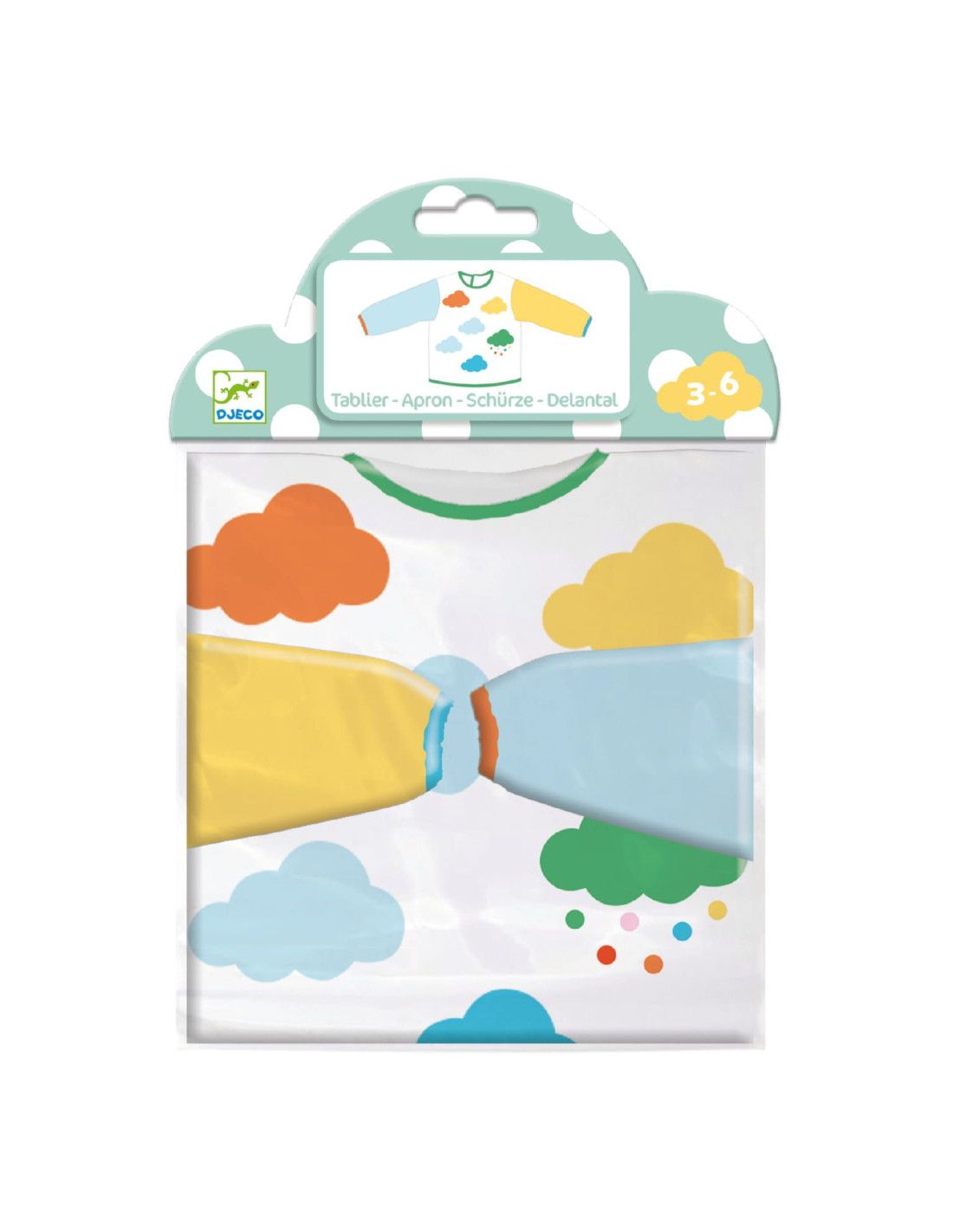 Kolorowy fartuszek ochronny dla dzieci Djeco z motywem chmurek to praktyczne akcesorium do zabawy i nauki.