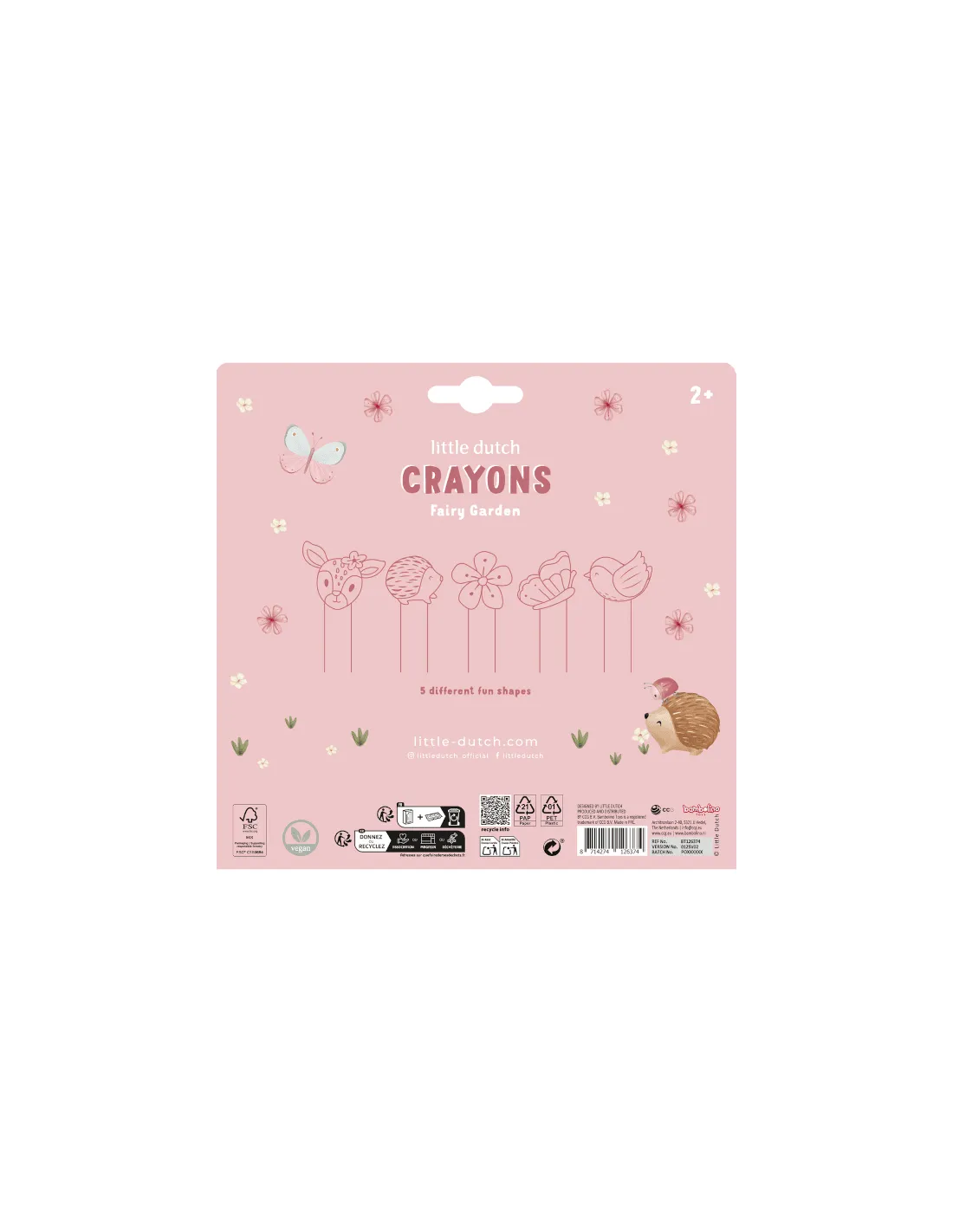 Kredki woskowe Little Dutch Fairy Garden to doskonały wybór dla maluchów, które rozpoczynają swoją przygodę z rysowaniem. Zestaw zawiera 5 pastelowych kredek z uroczymi końcówkami inspirowanymi kolekcją Fairy Garden.