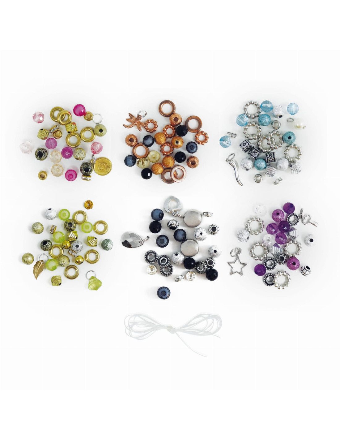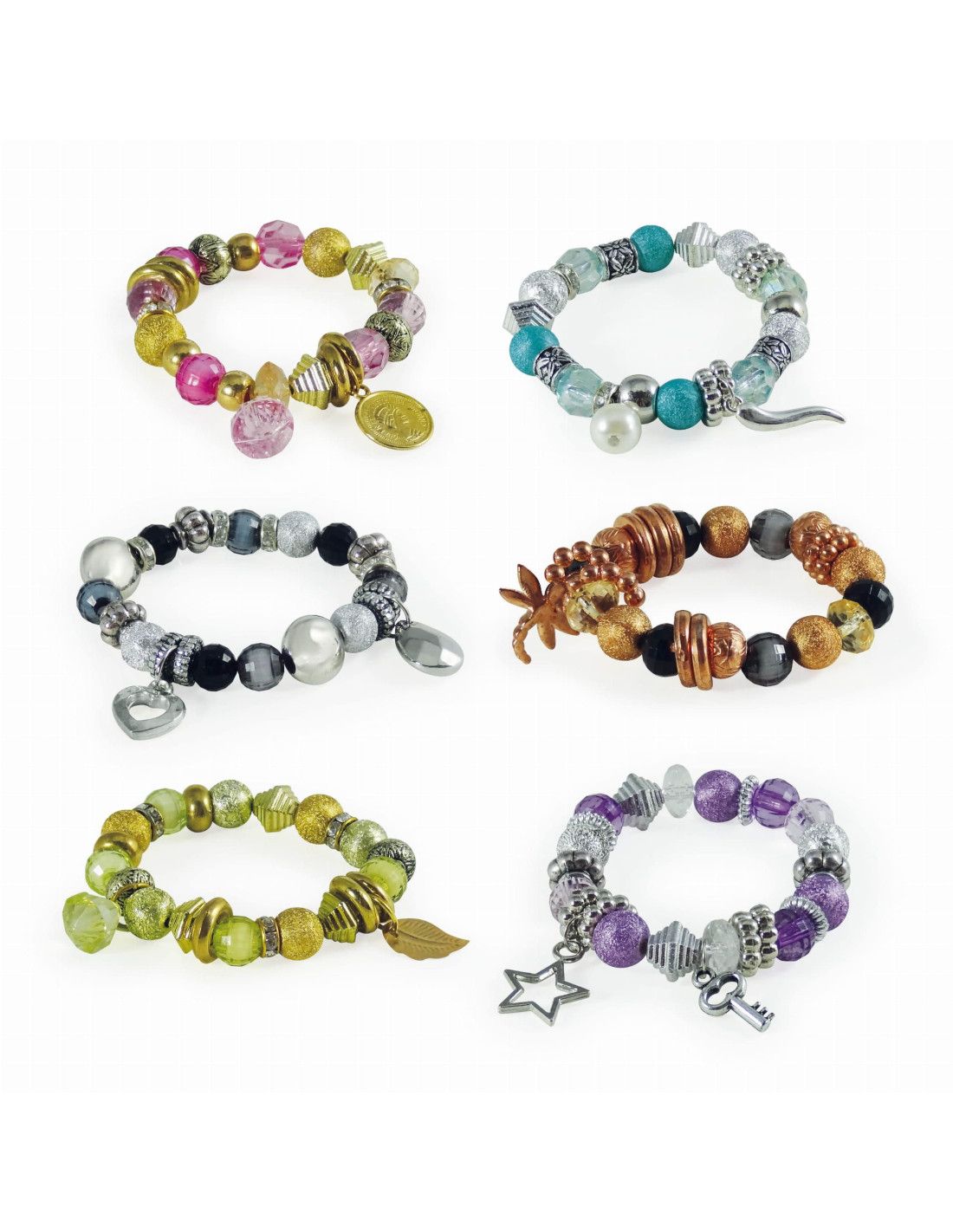 Zestaw do stworzenia 6 modnych bransoletek z koralików i zawieszek.