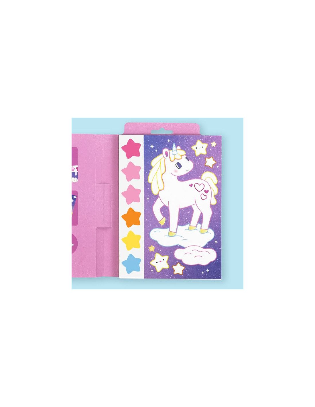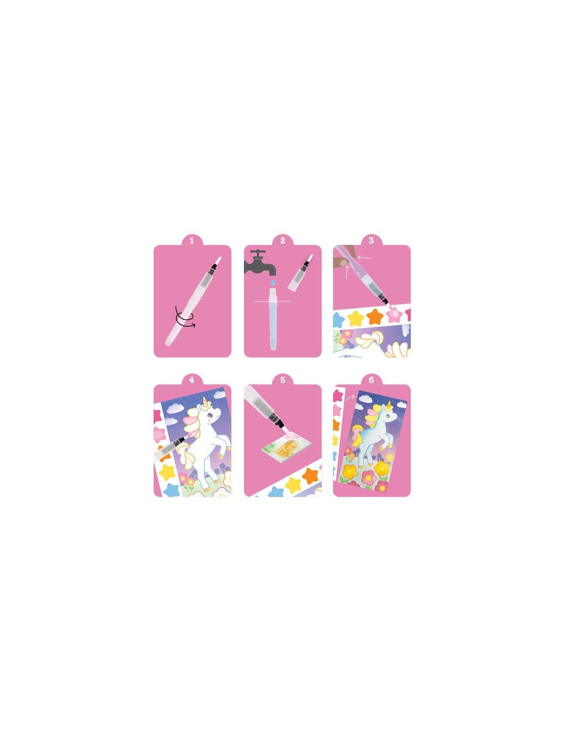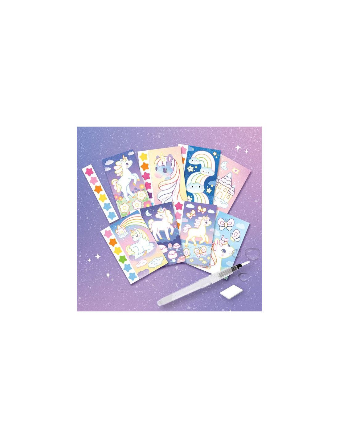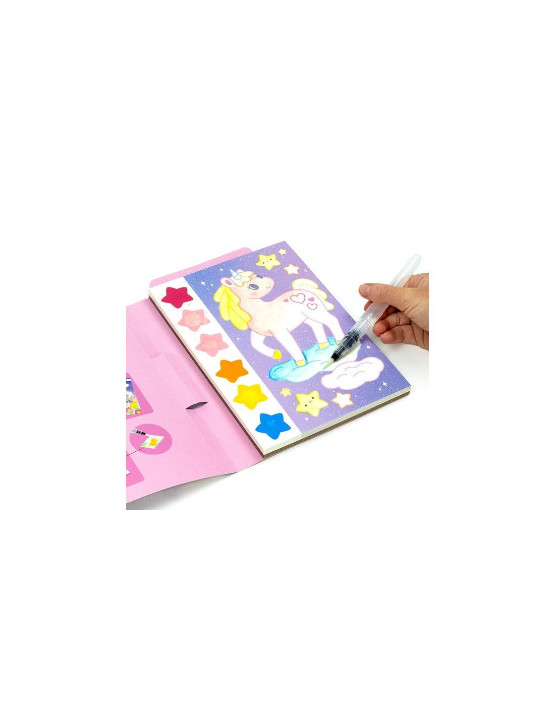 Idealny do nauki kolorowania i rozwijania zdolności plastycznych. Zestaw zawiera 16 stron z uroczymi ilustracjami jednorożców i pastelowego świata marzeń, każda z wbudowaną paletą farbek dopasowanych do rysunku. Malowanie odbywa się za pomocą dołączonego pędzelka wodnego, bez konieczności używania dodatkowych akcesoriów.