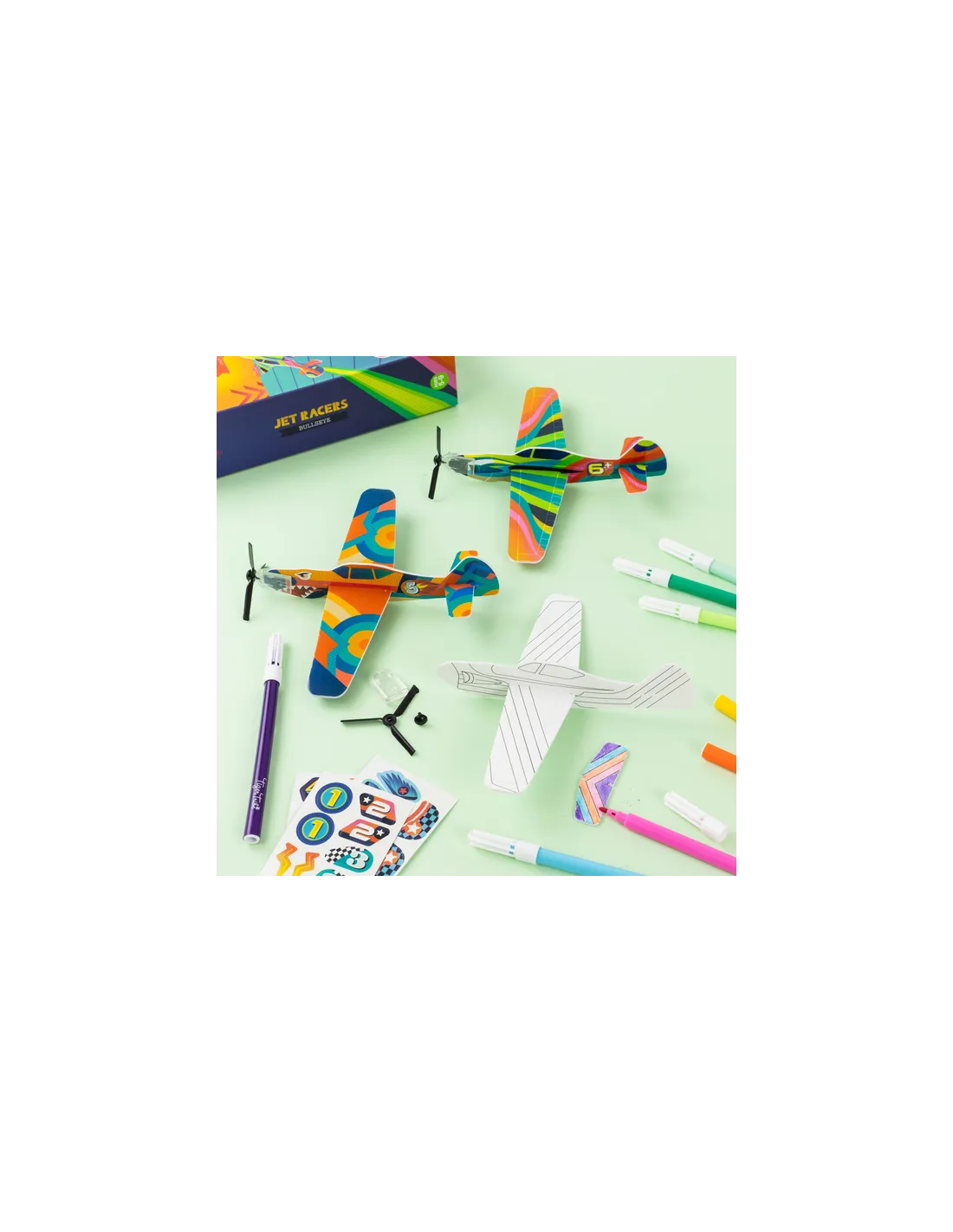 - 6 × piankowe samoloty (3 kolorowe, 3 do dekorowania)